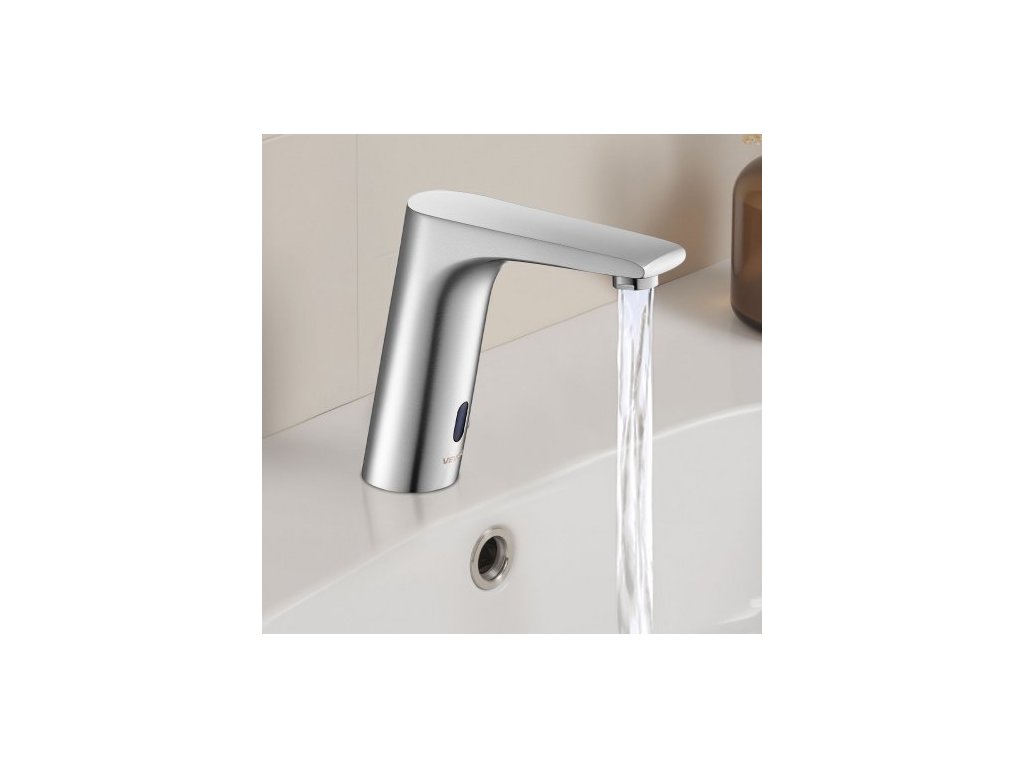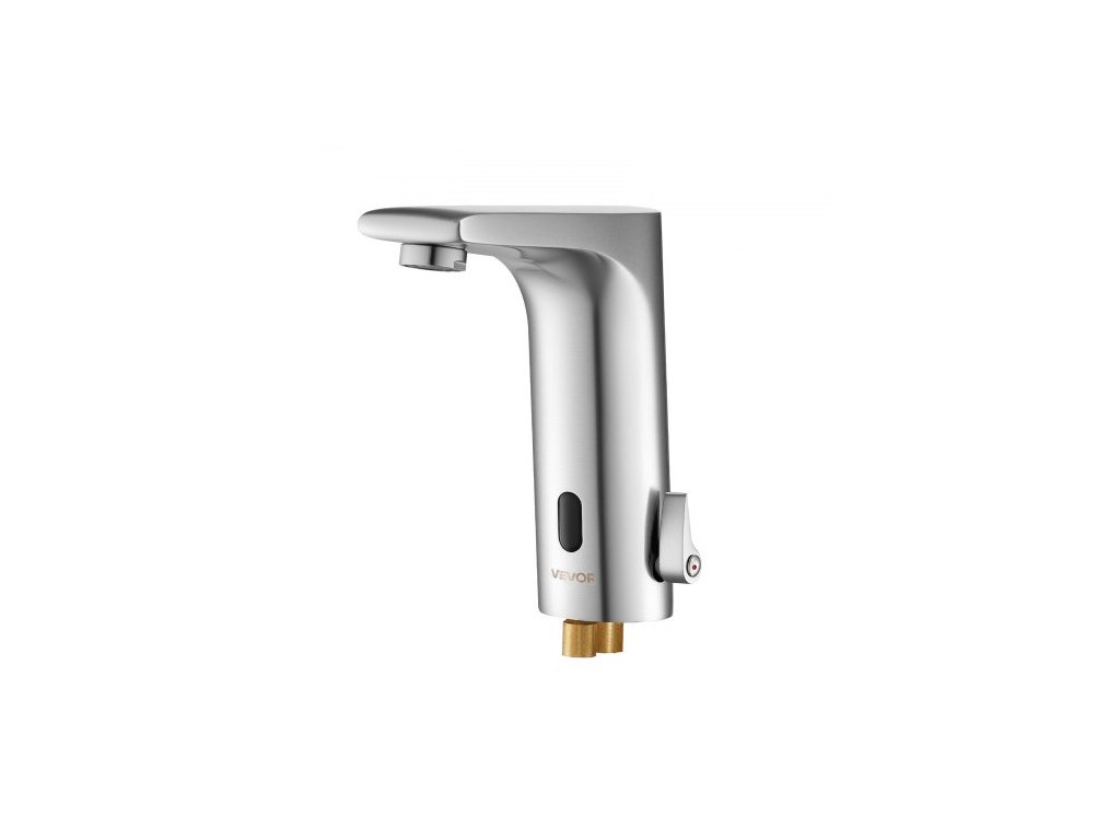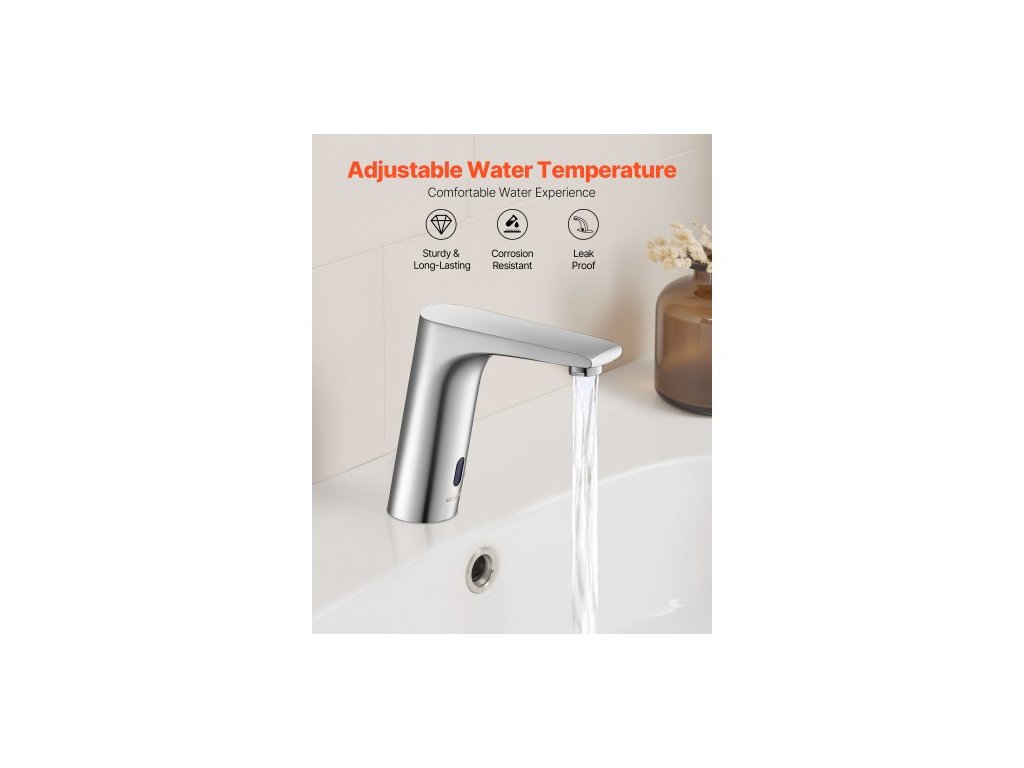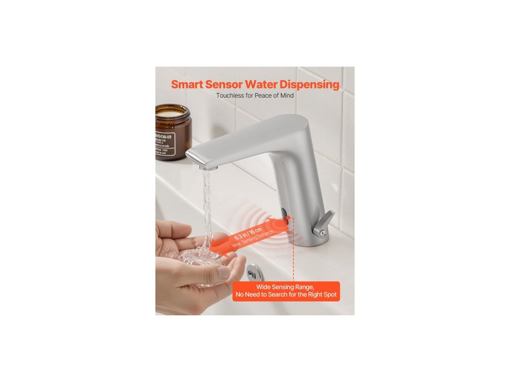 Bezdotyková koupelnová umyvadlová baterie, automatický senzor pohybu, toaletní baterie, handsfree nastavitelná studená a teplá voda s jednou rukojetí, baterie napájená pro potrubí 9,5 mm, kartáčovaný nikl stříbrný