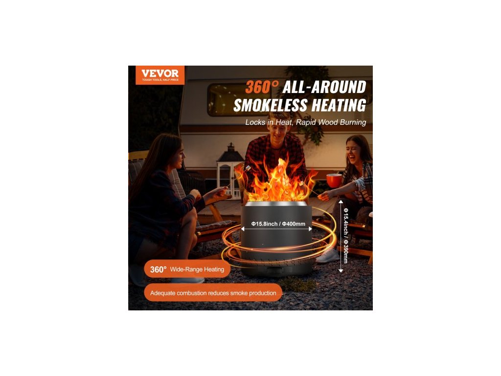 Bezdýmná ohniště, ohniště, průměr 40,1 cm, dřevo, nerezová ocelBezdýmná technologie