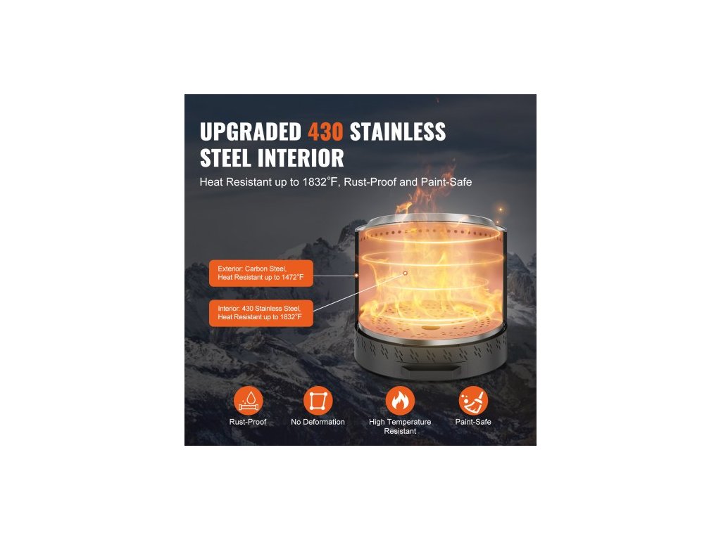 Bezdýmná ohniště, ohniště, dřevo, nerezová ocel, průměr 40,1 cm