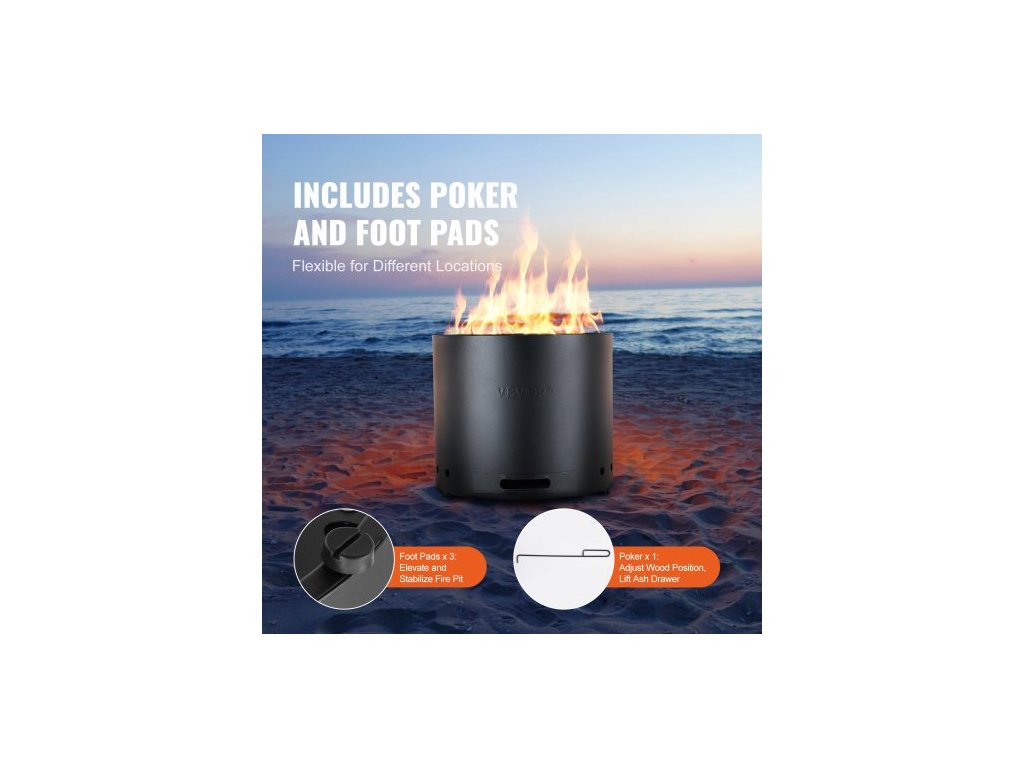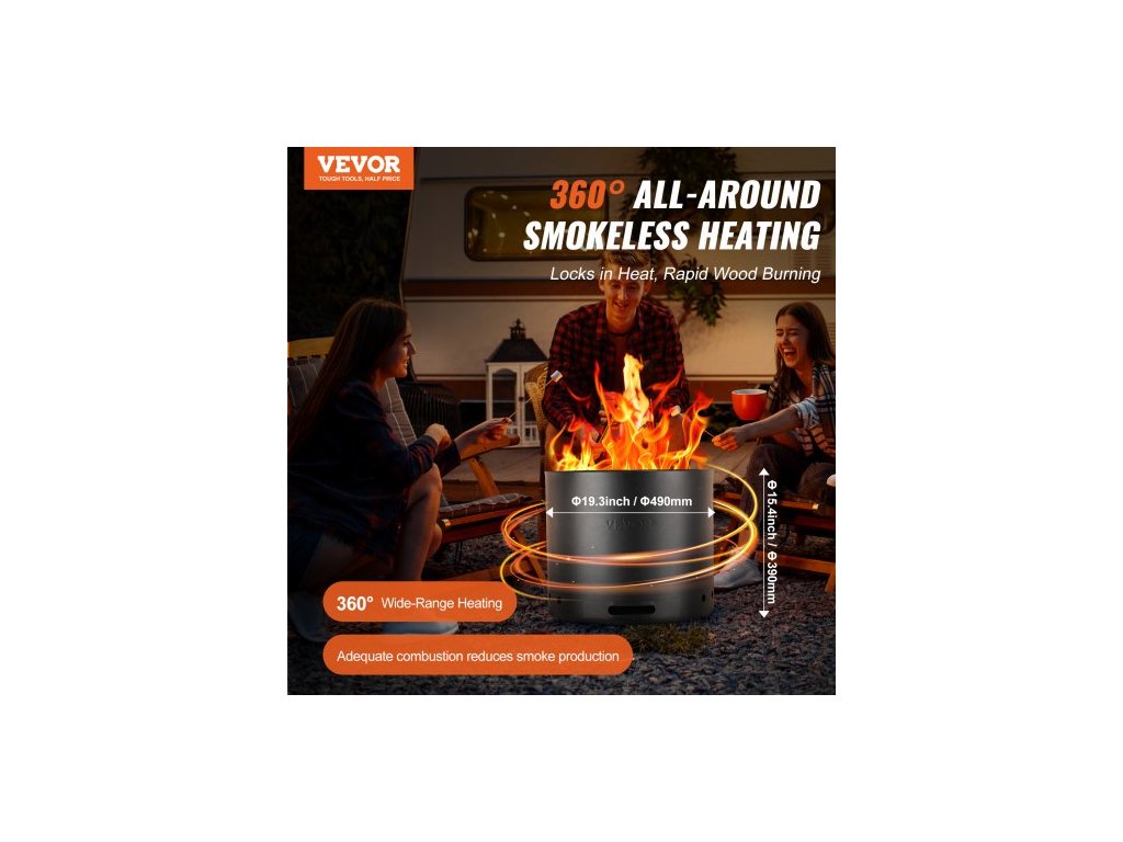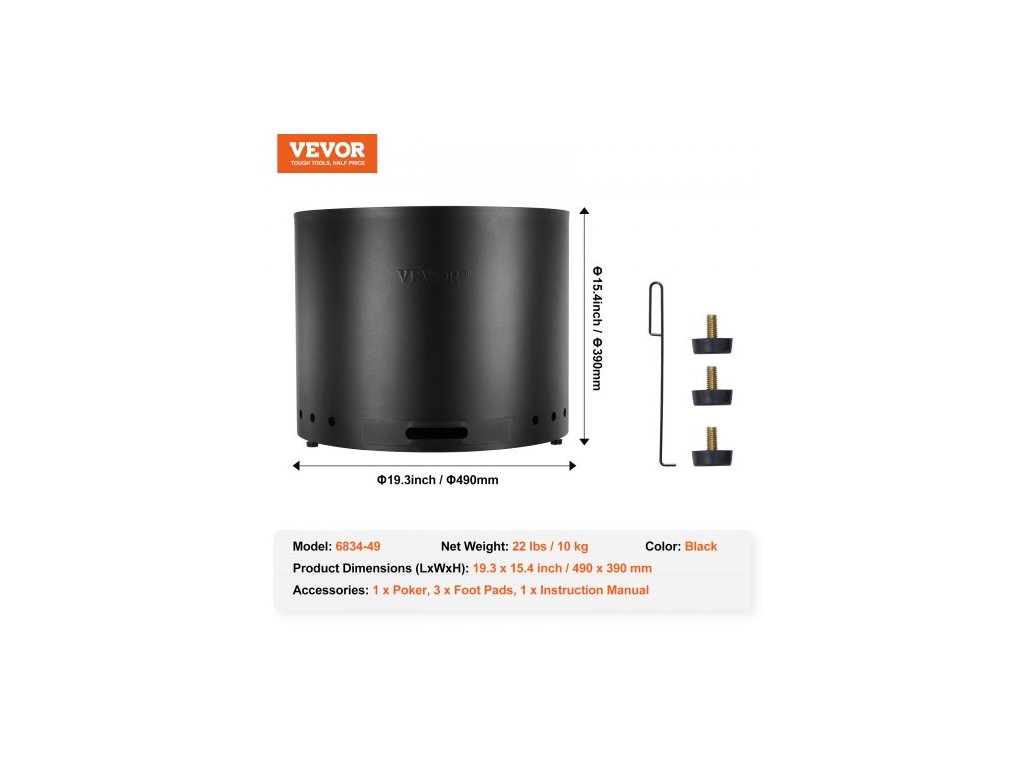 Bezdýmná ohniště, ohniště, dřevo, nerezová ocel, průměr 49 cm, bezdýmná technologie, rychlé a úplné spalování, snadné čištění, přenosné a lehké, všestranné použití, bezpečnostní záruka, rozměry výrobku (DxŠxV): Φ490 x 390 mm, hlavní materiály: vnitřní nerezová ocel SUS430, vnější nerezová ocel Q235A, barva: černá, model: 6834-49, povrchová úprava: vysokoteplotní práškové lakování, čistá hmotnost: 10 kg, konstrukce popelníku: boční výsuvDoplňkové parametry