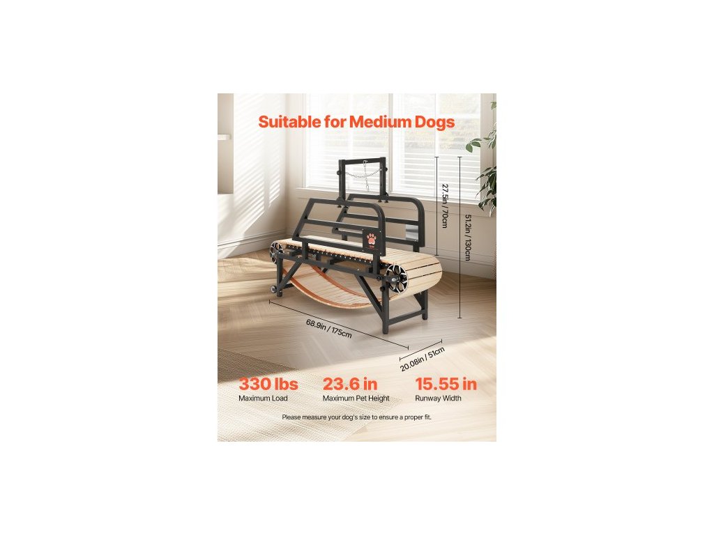 Běžecký pás pro psy střední velikosti, nosnost 150 kg, běžecký pás pro psy s nastavitelnými rampami, 15,5" běžecký pás s lamelovým mechanismem, cvičební pomůcka pro domácí mazlíčky pro cvičení uvnitř i venkuBěžecký pás pro psy velké velikosti