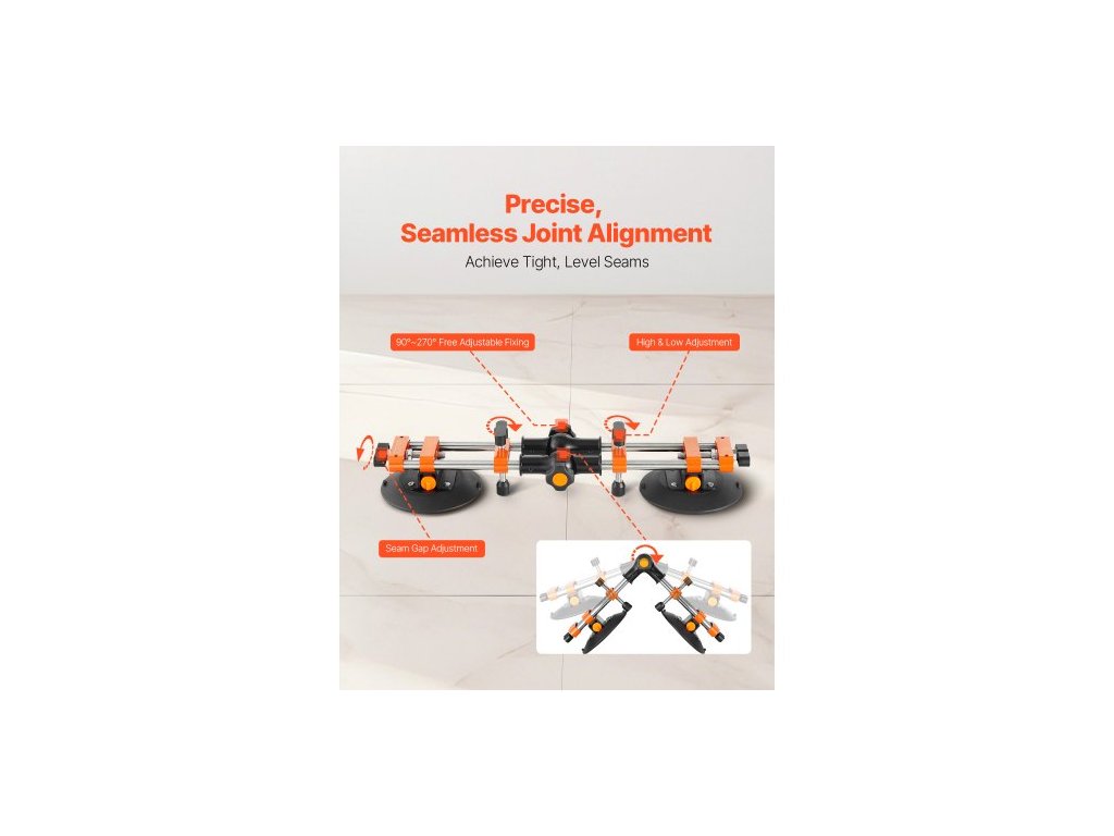 Bezešvý zarovnávač spár, 2 balení zarovnávače žulových spár s 6palcovými vakuovými přísavkami, spojovač spár pro spojování a vyrovnávání spár, nastavitelný 90°-120°, nástroj pro instalaci dlaždic a mramorových desek na pracovní deskuSilný sací výkon