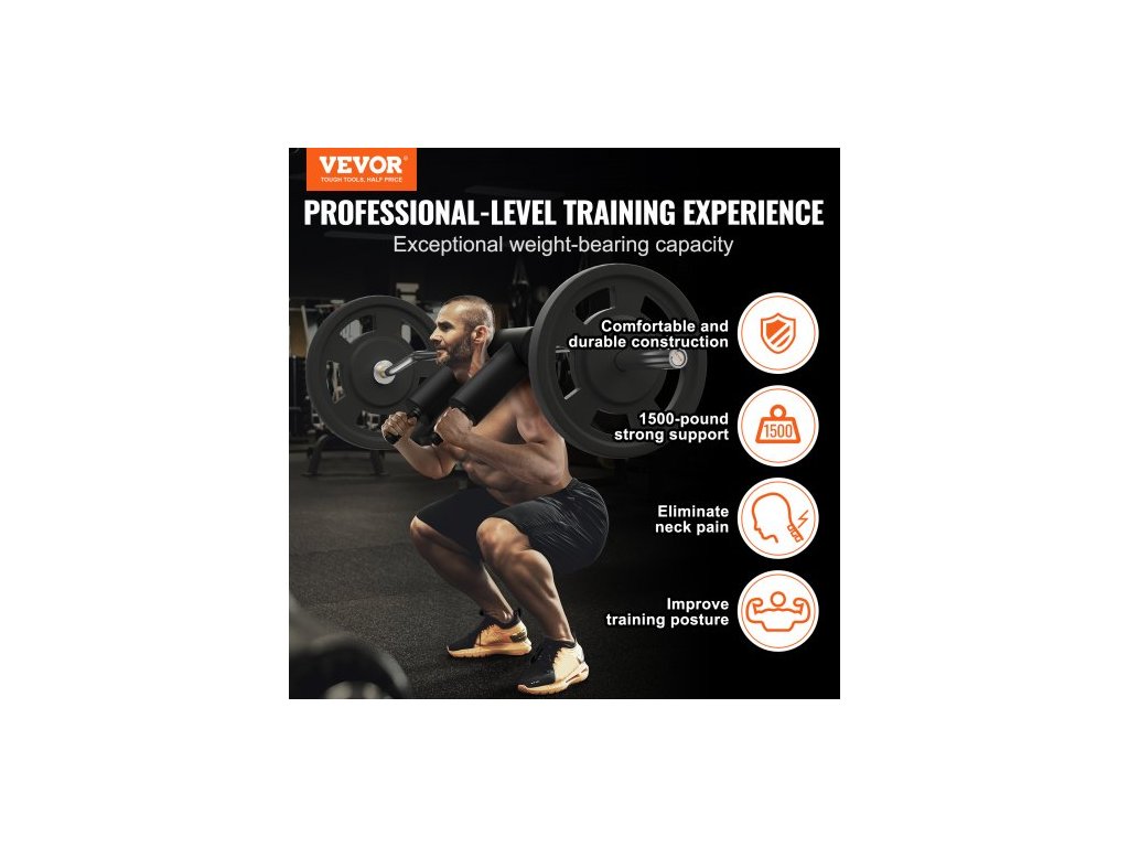 Bezpečnostní dřepová tyč , fitness dřepová tyč s nosností 1 500 liber, nástavec na bezpečnostní dřepovou tyč s chrániči ramen a paží, závaží o průměru 32 mm, ideální pro přední dřepy, výpady, rehabilitaci a fyzioterapiiVynikající nosnost