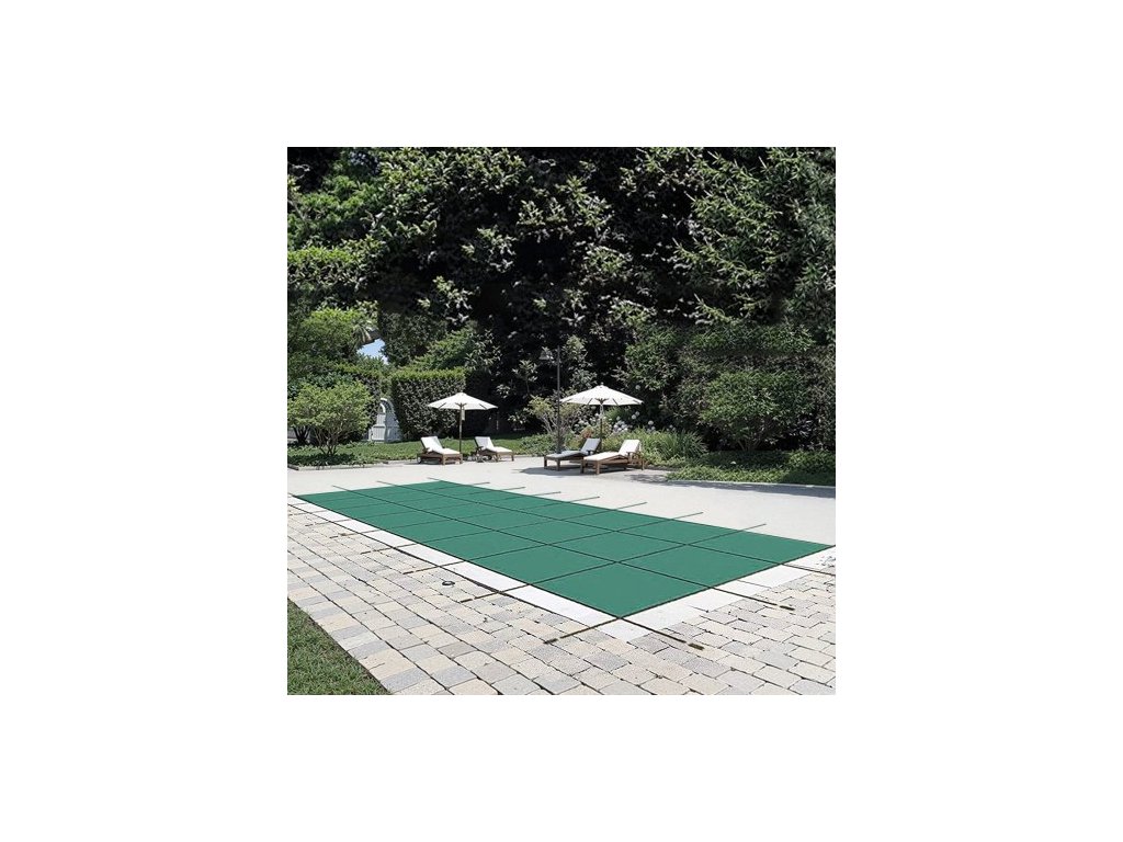 Bezpečnostní kryt bazénu 5,48 x 12,8 m, vhodný pro bazén 4,88 x 12,19 m, obdélníkový bezpečnostní kryt zapuštěného bazénu, zelený síťovaný ochranný kryt pro bazén, zimní bezpečnostní kryt