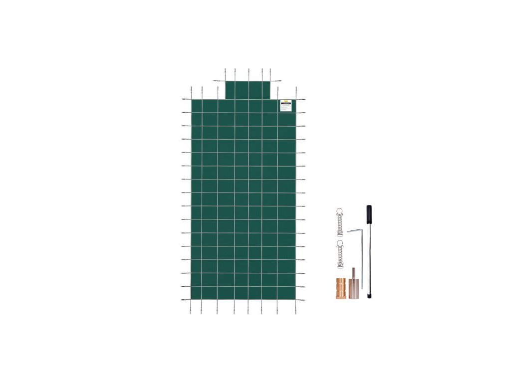 Bezpečnostní kryt bazénu je vhodný pro obdélníkové zapuštěné bazény 20x40 stop, bezpečnostní kryt bazénu se středovým schodem 4x10 stop, pevný síťovaný kryt bazénu s drenážními otvory pro bazén, zimní bezpečnostní kryt, zelenýPřiměřená velikost