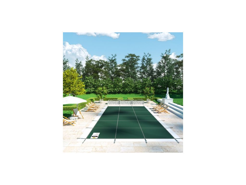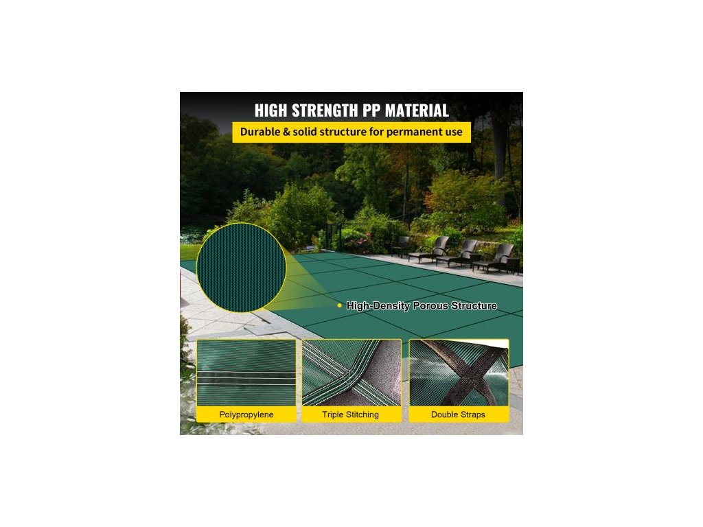 Bezpečnostní kryt bazénu vhodný pro obdélníkové zapuštěné bazény o rozměrech 6,09 x 12,19 m, bezpečnostní kryt bazénu s drenážními otvory, pevný síťovaný kryt bazénu, zimní bezpečnostní kryt, zelený