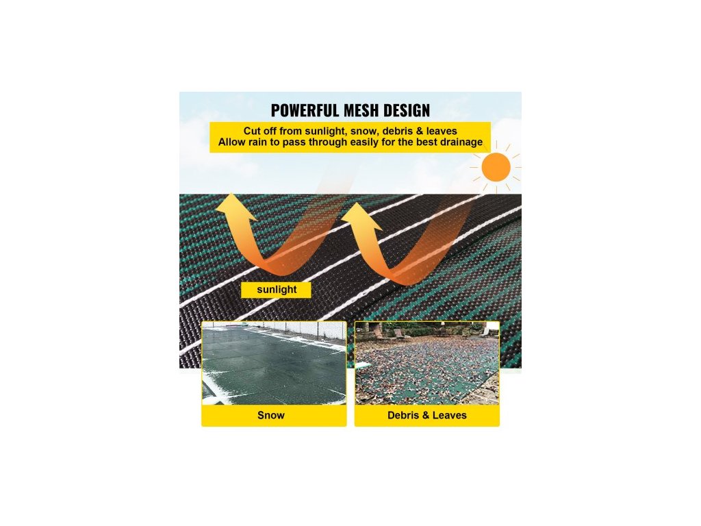 Bezpečnostní kryt bazénu je vhodný pro obdélníkové zapuštěné bazény o rozměrech 6,09 x 12,19 m, bezpečnostní kryt bazénu s drenážními otvory, pevný síťovaný kryt bazénu, zimní bezpečnostní kryt, zelenýPřiměřená velikost