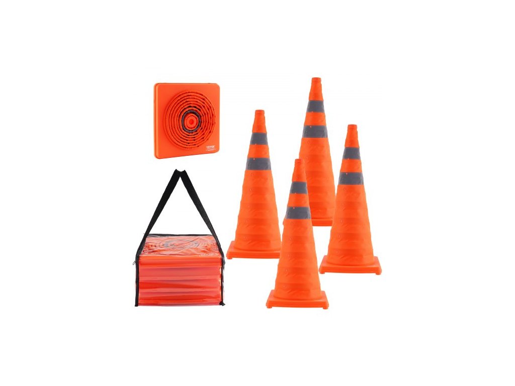 Bezpečnostní kužely , balení 4 skládacích dopravních kuželů o průměru 28 palců, stavební kužely s reflexními límci, široká základna a úložný vak, pro řízení dopravy, výcvik řízení, parkovištěSkládání pro snadné skladování