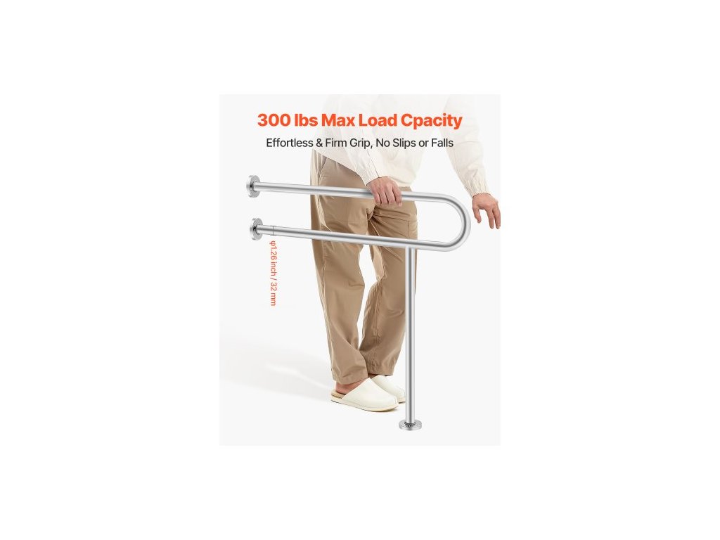Bezpečnostní madlo na toaletu , madlo pro invalidy ve tvaru U o délce 31,5 palce, bezpečnostní tyč pro seniory z nerezové oceli 304, madla na toaletu s protiskluzovou rukojetí, bezpečnostní madlo s nosností 300 liber a podpůrnou nohouSnadné stání nebo sezení