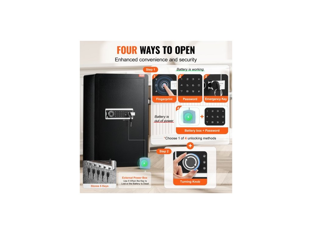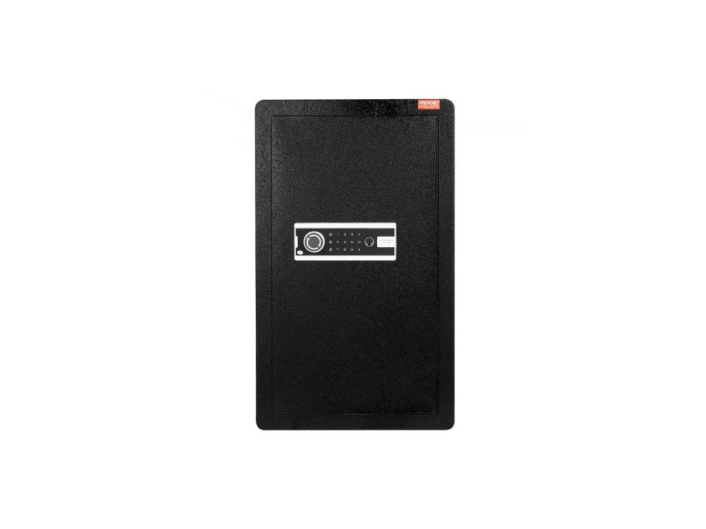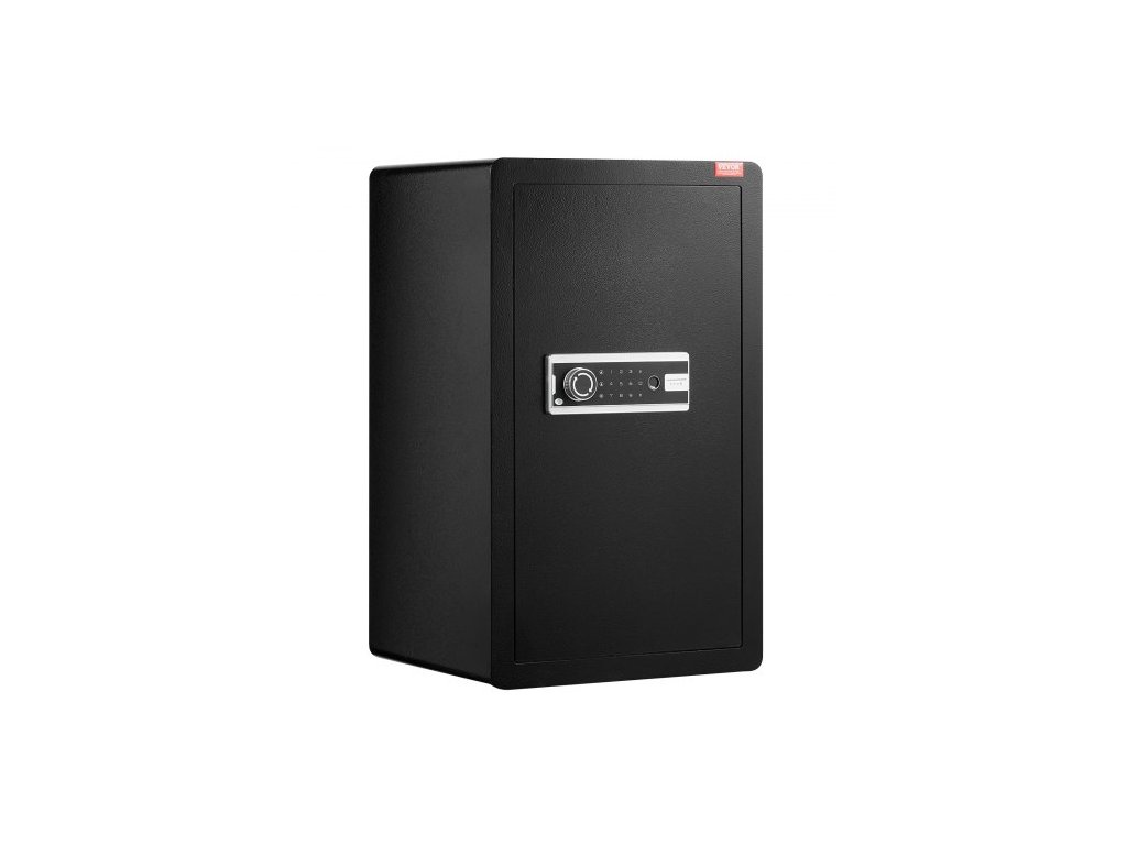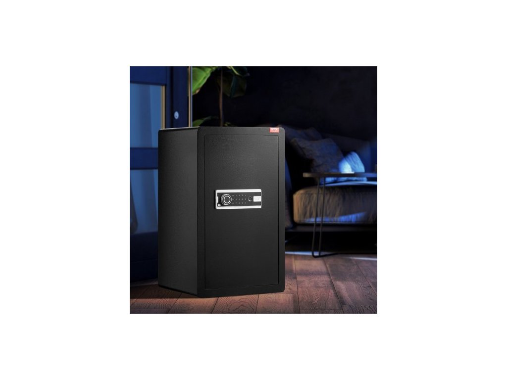Trezor s jedním dveřmi o objemu 113 l, zámkem na klíč, heslem a otiskem prstu, bezpečnostní schránka s nehořlavou taškou, věšákem na klíče, LED světlem a 2 policemi na peníze, dokumenty, šperky a cennosti, černýPokročilá šifrovací technologie