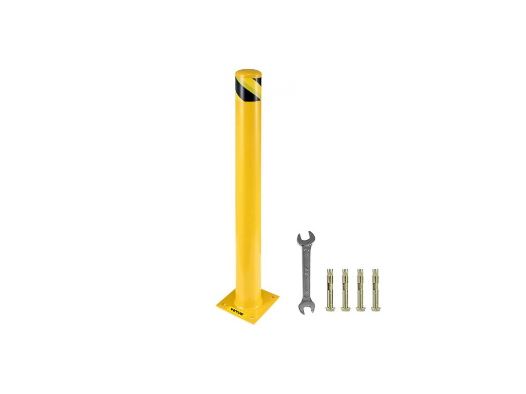 Rozměry základny (D x Š): 7,9 x 7,9 palce / 20 x 20 cm,Barva: Žlutá a černá,Model: Bezpečnostní sloupek 42 x 4,5 palce,Tloušťka základny: 0,2 palce / 5 mm,Materiál: ocel Q235,Výška: 42 palce / 107 cm,Čistá hmotnost: 19 lbs / 8,5 kg,Tloušťka trubky: 0,08 palce / 2 mm,Průměr trubky: 4,5 palce / 11,4 cm, Součástí balení je: 1 sada (4 kusy) montážních kotevních šroubů