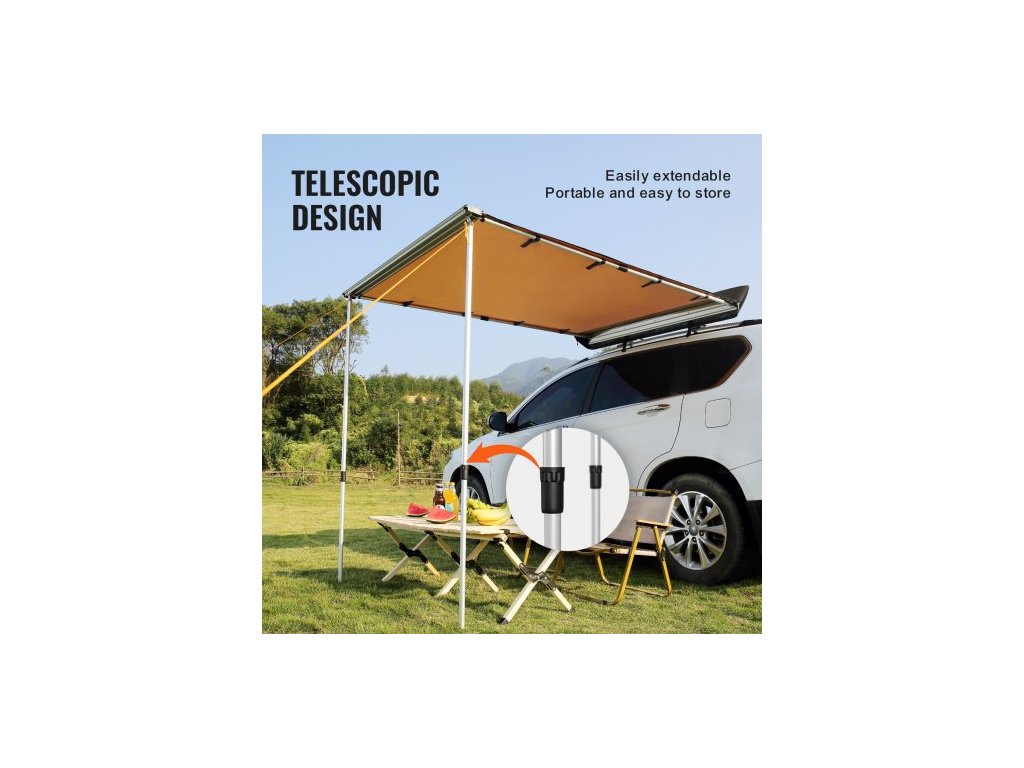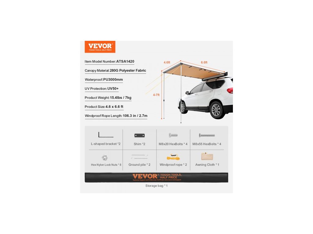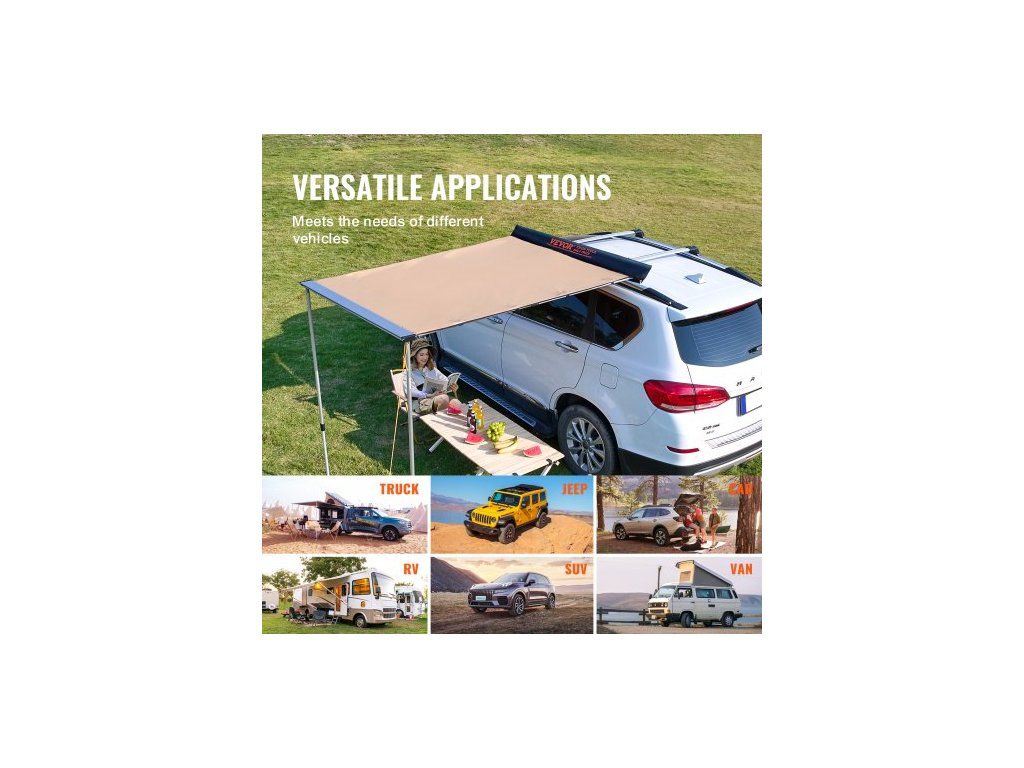 Boční markýza do auta, velká stínicí clona 4,6'x6,6', zatahovací PU 3000mm UV50+ s vodotěsnou úložnou taškou, vhodná pro nákladní automobily, SUV, dodávky, obytné vozy