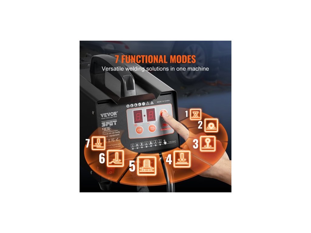 Bodový svářeč promáčklin, sada pro opravu promáčklin s výkonem 3 kW a 2 svářecími pistolemi, automatické/manuální svařování a 7 režimů, stroj na bodové svařování karoserií pro opravu promáčklin u automobilů a nákladních vozůRežimy svařování na míru