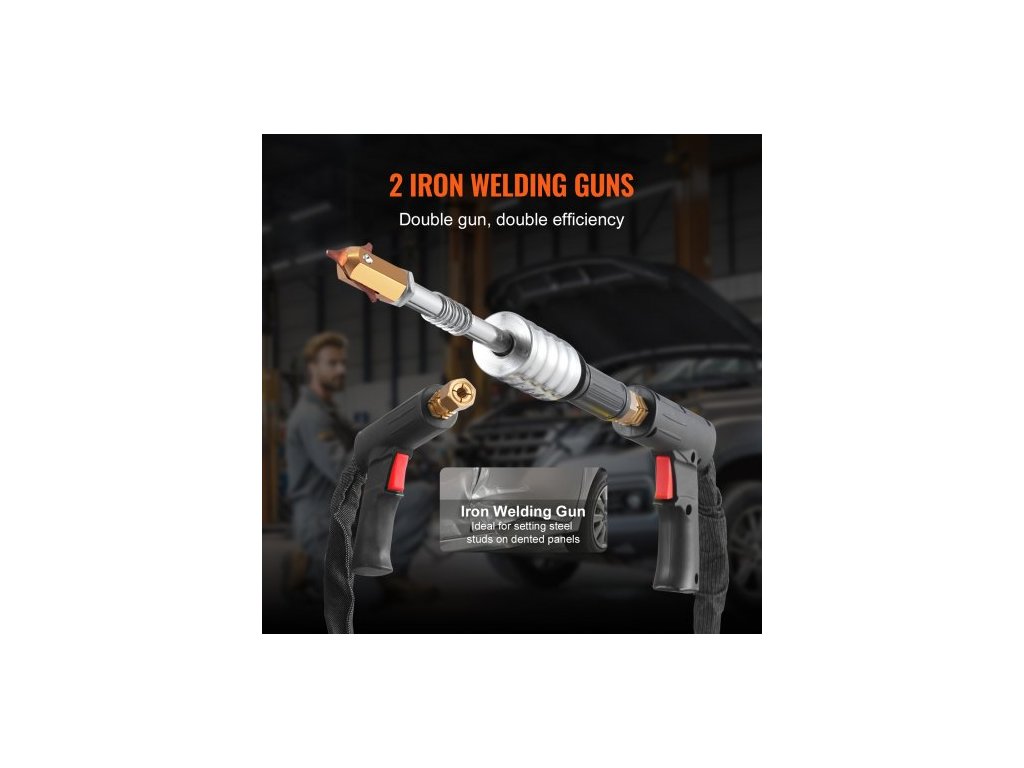 Bodový svářečský stroj na opravu promáčklin, 3KW Sada na opravu promáčklin svářečkou s 2 svářecími pistolemi, automatické/ruční svařování a 7 režimů, Stroj na bodové svařování karoserií pro opravu promáčklin a promáčklin na automobilech a nákladních