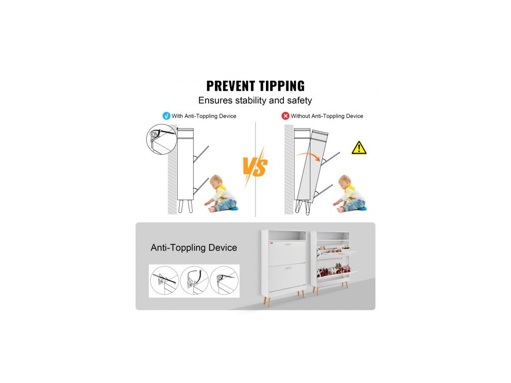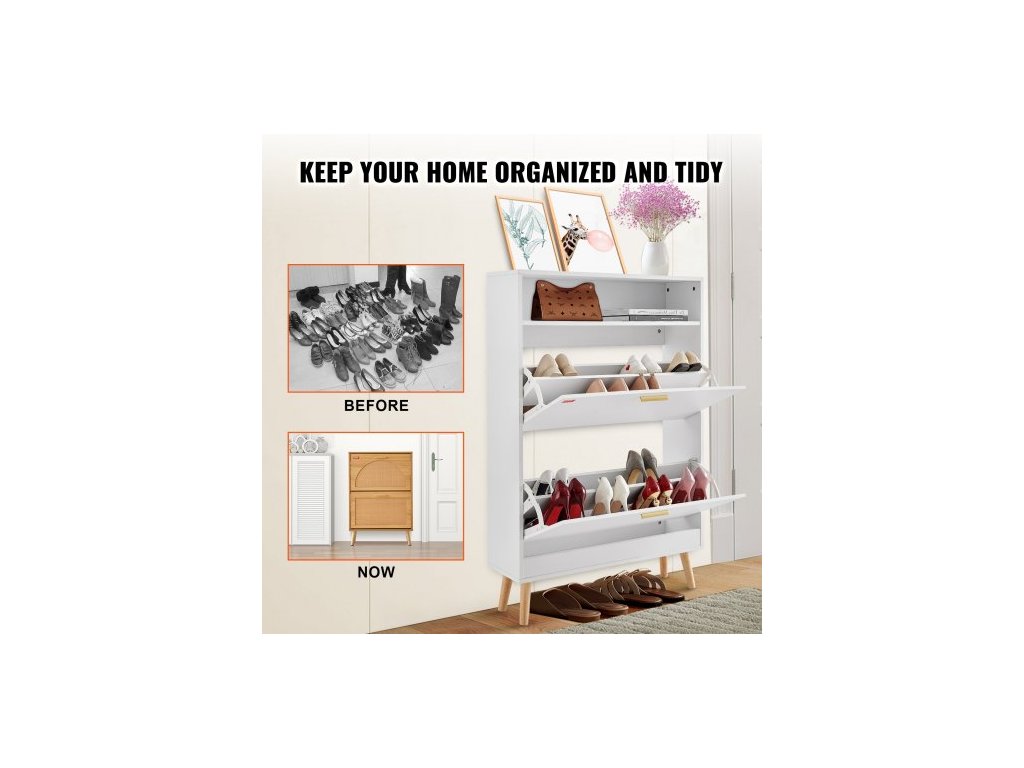 Botník se 2 výklopnými zásuvkami, botník do předsíně, volně stojící organizér na boty s horní úložnou přihrádkou na podpatky, boty, pantofle do chodby, obývacího pokojeVynikající řešení pro úsporu místa