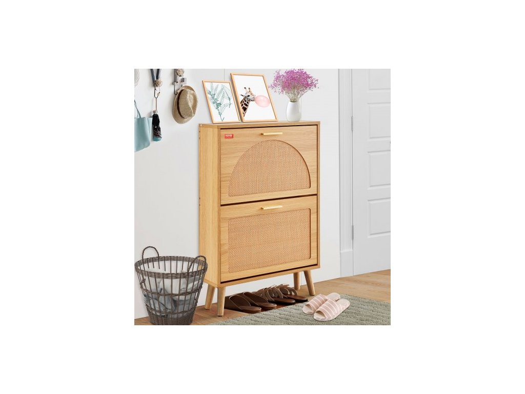 Botník se 2 výklopnými zásuvkami, botník do předsíně, volně stojící organizér na boty s ratanovými dvířky na podpatky, boty, pantofle do předsíně, obývacího pokojeVynikající řešení pro úsporu místa