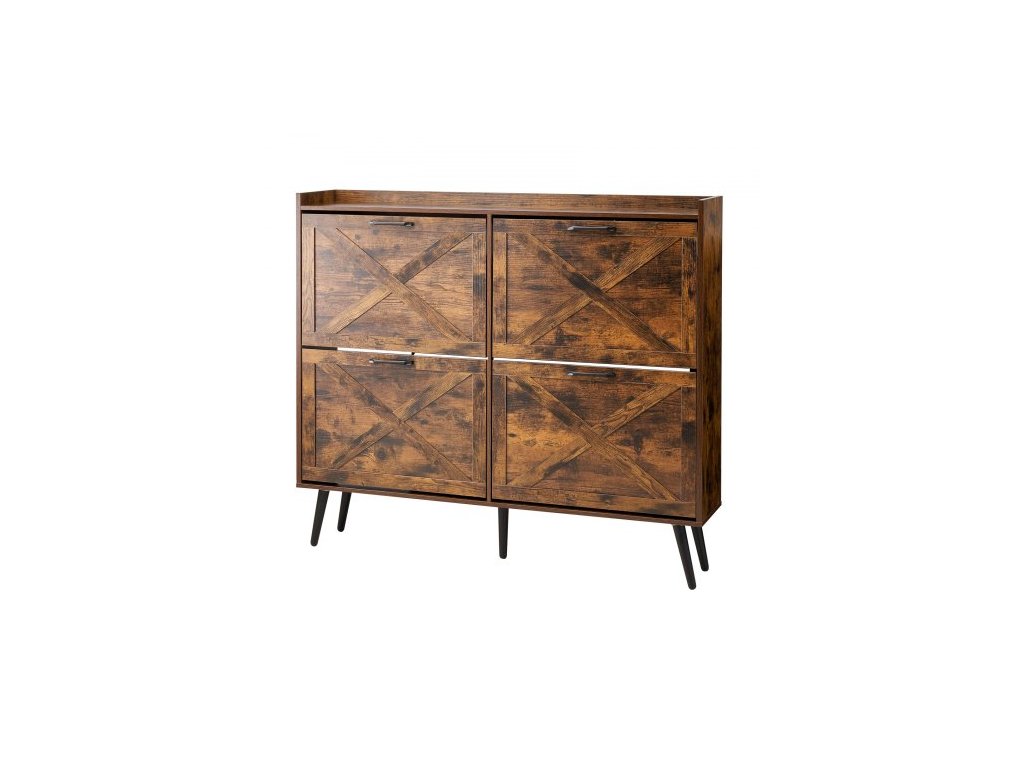 Botník se 4 výklopnými zásuvkami, farmářská úložná skříňka na boty s dřevěnými nohami a pojistkou proti převrácení, volně stojící organizér na boty ideální do předsíně, chodby, ložnice, obývacího pokoje, hnědáÚložný prostor v jednom kroku