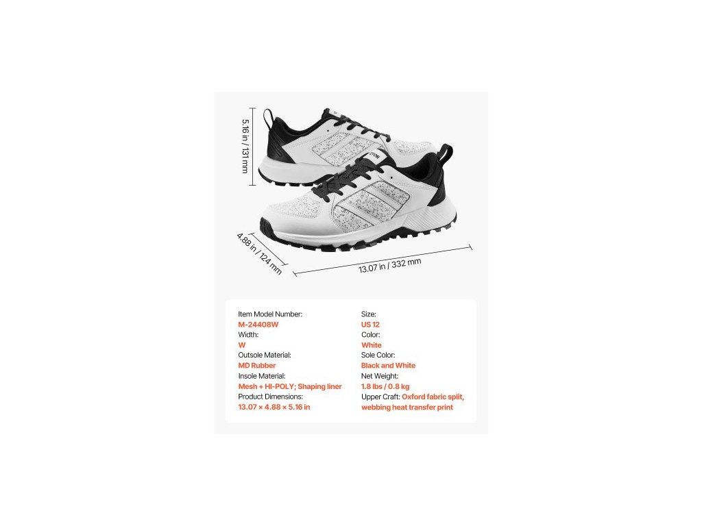 Velikost: US 12,Barva: Bílá,Barva podrážky: Černá a bílá,Číslo modelu: M-24408W,Materiál podrážky: MD guma,Materiál stélky: Síťovina + HI-POLY; tvarující vložka,Rozměry produktu: 13,07 x 4,88 x 5,16 palce/332 x 124 x 131 mm,Šířka: Š,Svršek: Oxfordská tkanina, potisk s tepelným přenosem,Čistá hmotnost: 1,8 lbs/0,8 kg