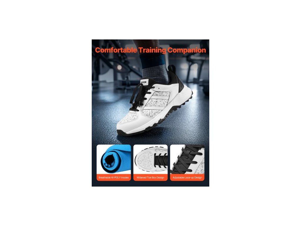 Boty na crossový trénink , šířka W, velikost UK 12, boty s širokou špičkou, oporou klenby a nastavitelným šněrováním, tréninkové boty na běh, gymnastiku, venčení psů a vzpírání (bílé)Všestranné a vhodné pro různé scény