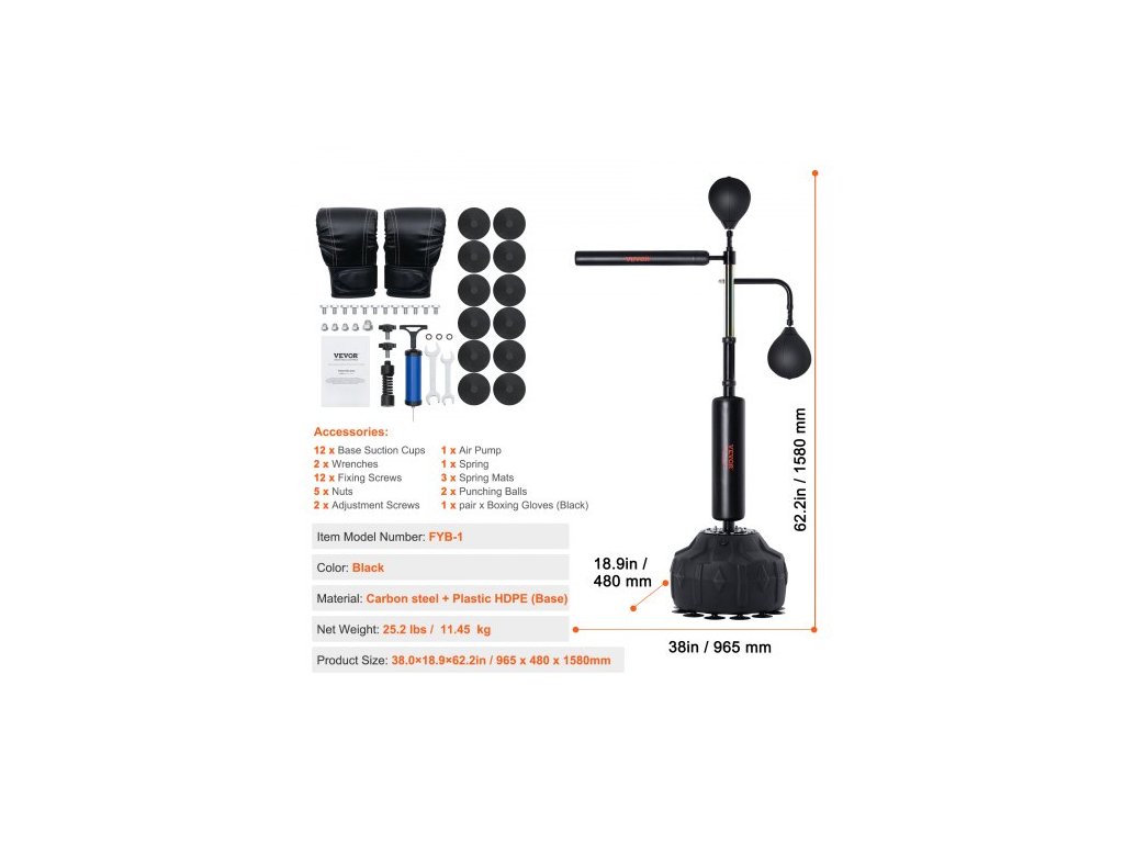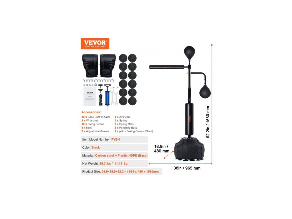 Barva: Černá,Číslo modelu položky: FYB-1,Materiál: Uhlíková ocel + HDPE,Čistá hmotnost: 25,2 lbs / 11,45 kg,Rozměry produktu: 38,0x18,9x62,2 palce / 965x480x1580 mm