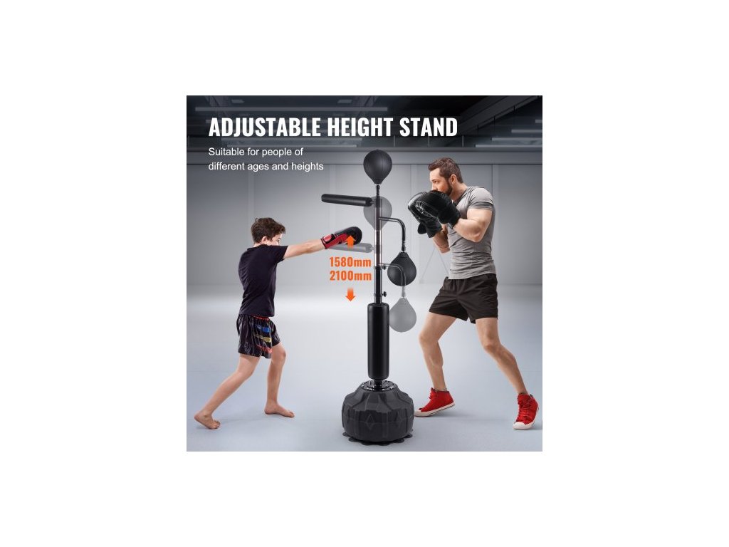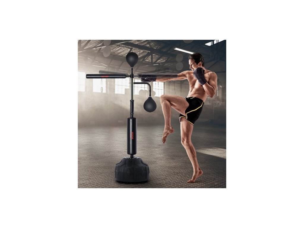 Boxerský pytel na rychlost, boxovací pytel se stojanem, reflexní boxerský pytel pro teenagery a dospělé, výškově nastavitelná sada volně stojících úderových pytlů s rukavicemi, cvičební pytel na rychlost pro trénink v domácí posilovně, černý
