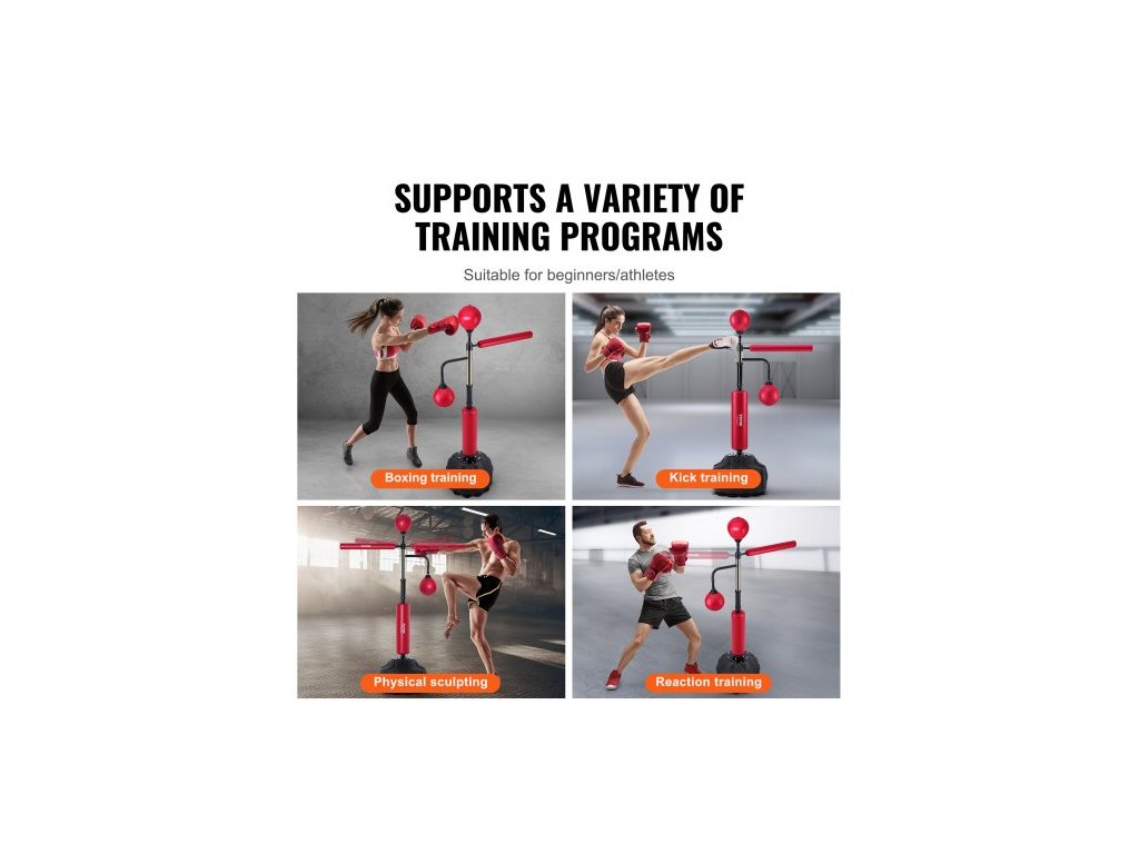 Boxing Speed Trainer, boxovací pytel se stojanem, reflexní boxovací pytel pro teenagery a dospělé, výškově nastavitelná sada volně stojící boxovacího pytle s rukavicemi, cvičební pytel na rychlost pro domácí trénink v posilovně, červenýSnadný odraz