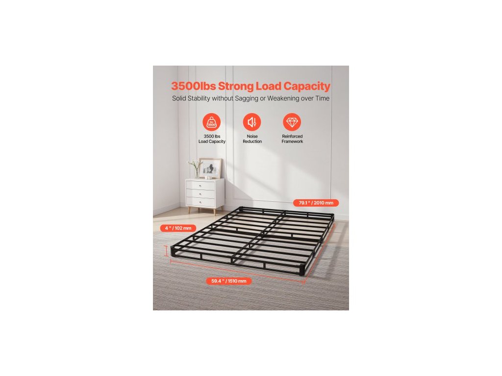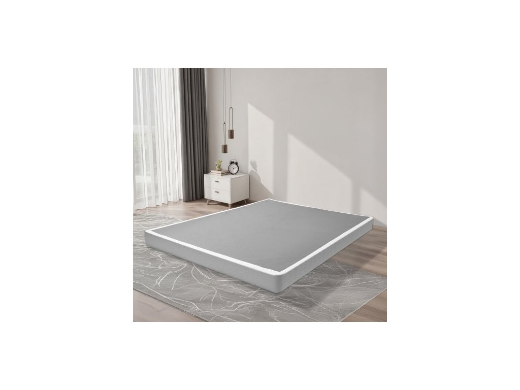 Box Spring, rám postele velikosti Queen s pratelným látkovým potahem, odolný kovový rám pro postel velikosti Queen, základ matrace 4 palce, maximální nosnost 3500 liber, snadná montáž, 79,1 D x 59,4 Š x 4 V palceProfesionální pružinový základ matrace