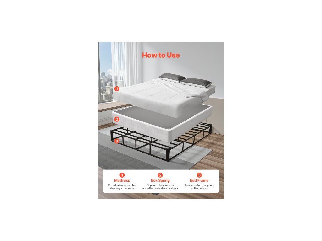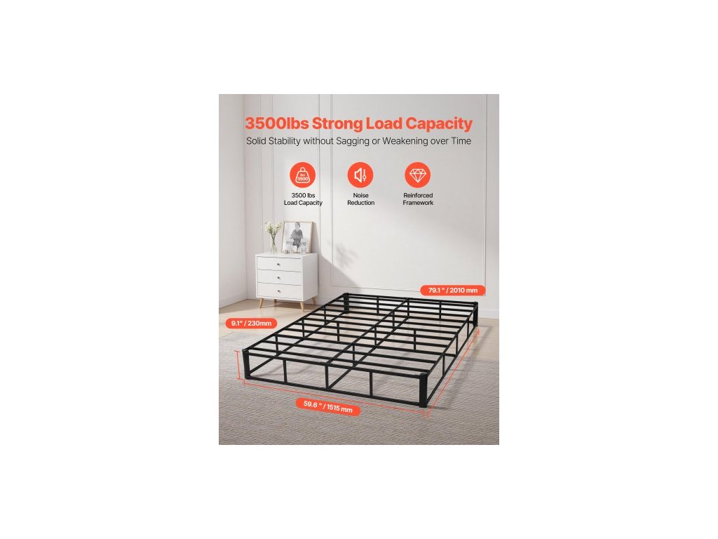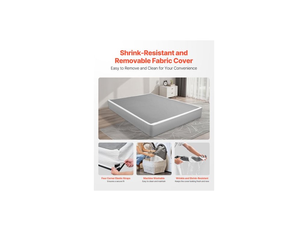 Box Spring, rám postele velikosti Queen s pratelným látkovým potahem, odolný kovový rám pro postel velikosti Queen, základ matrace 9 palců, maximální nosnost 3500 liber, snadná montáž, 79,1D x 59,6Š x 9,1V palcůProfesionální pružinový základ matrace