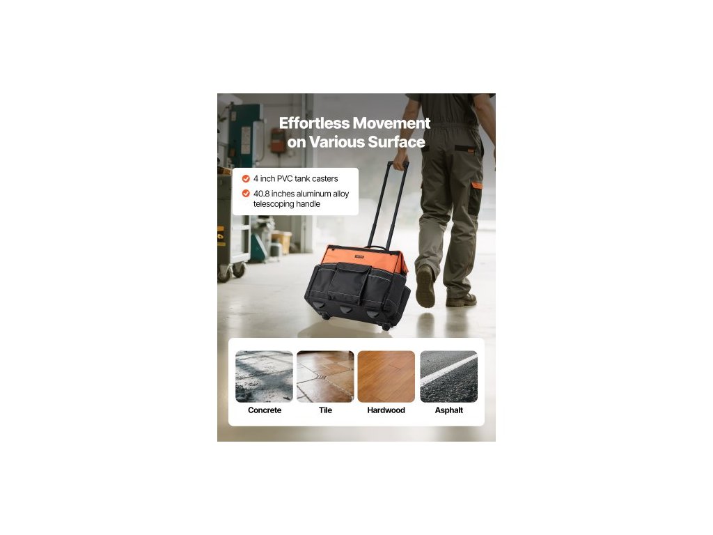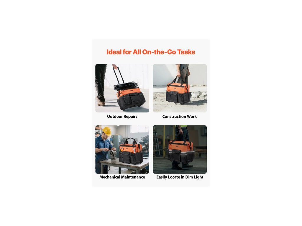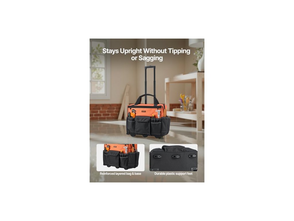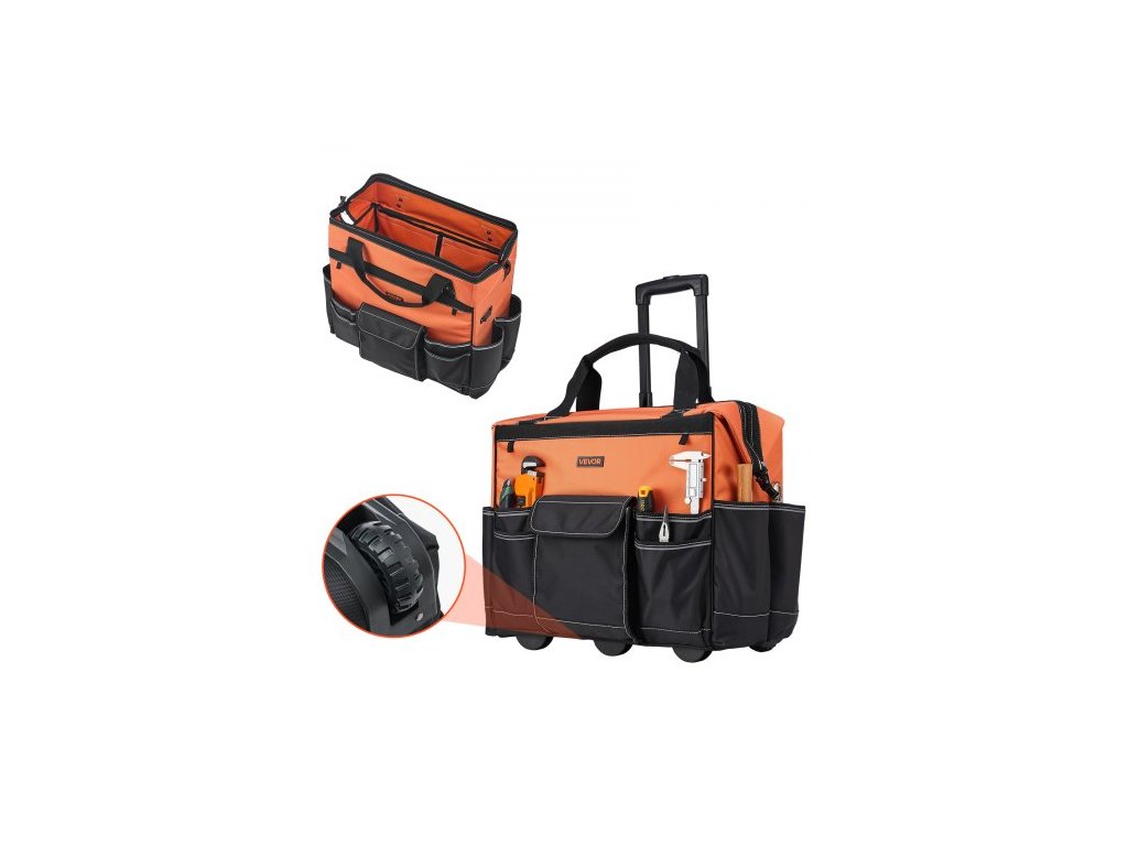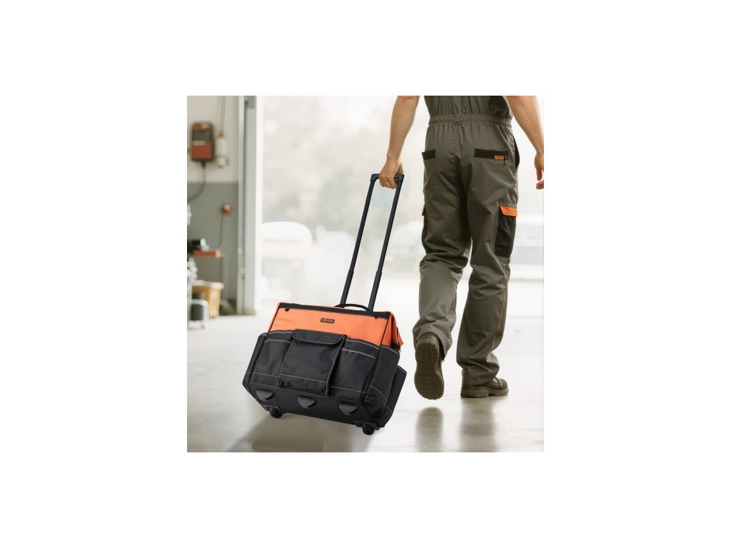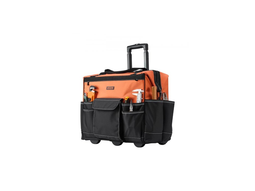 Brašna na nářadí na kolečkách, nosnost 48 kg, 27 kapes, odolná brašna na nářadí na kolečkách, nastavitelná teleskopická rukojeť a stabilní základna, organizéry do brašen na nářadí s kolečky pro stavebnictví, mechanikyIdeální pracovní společník