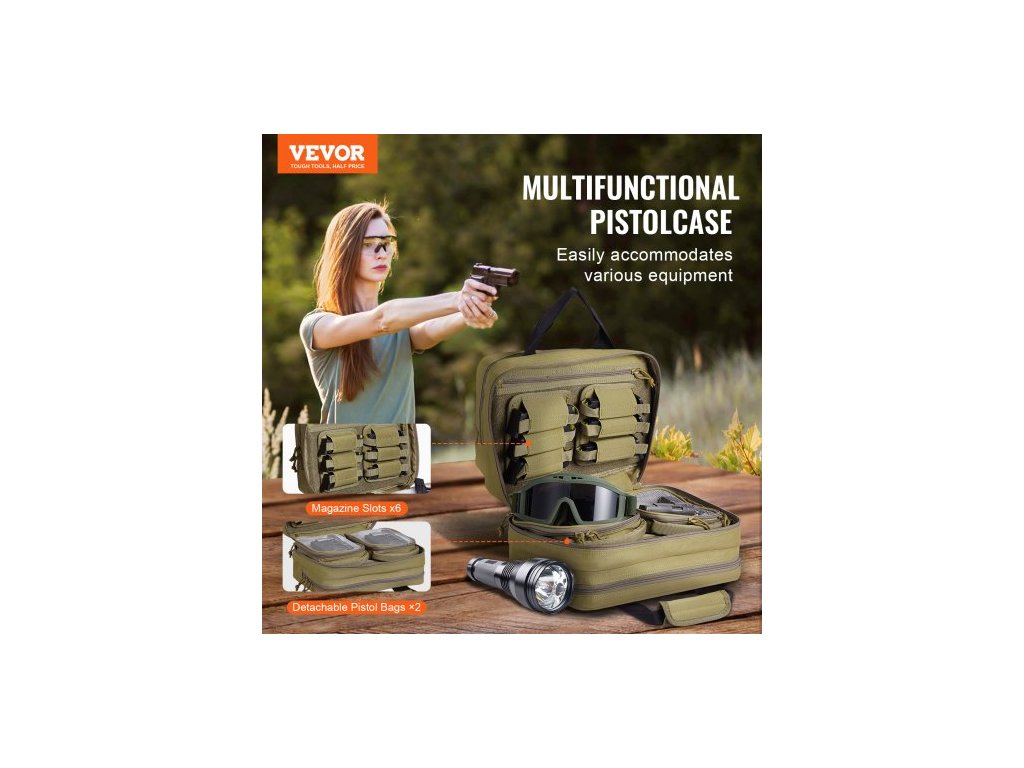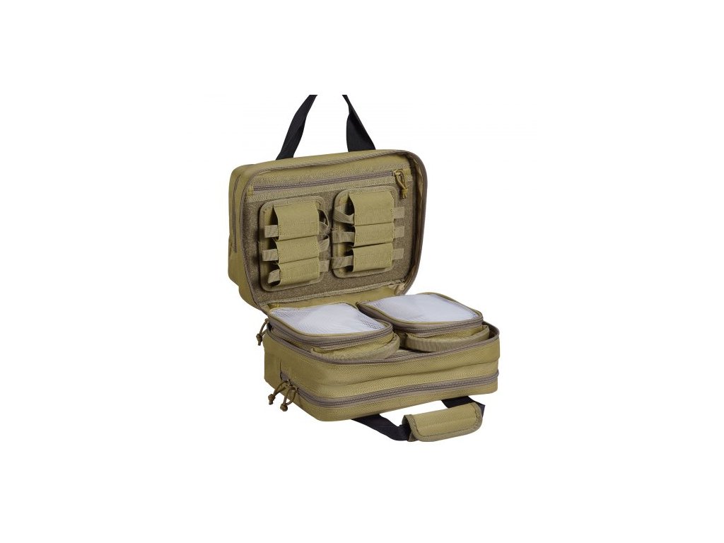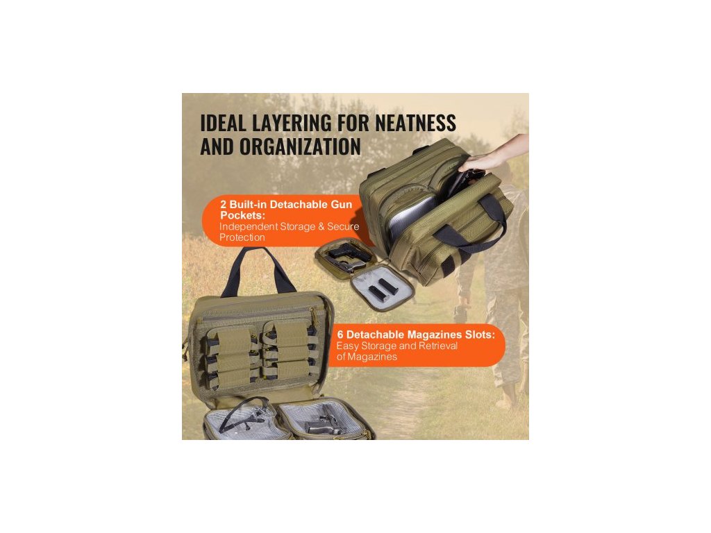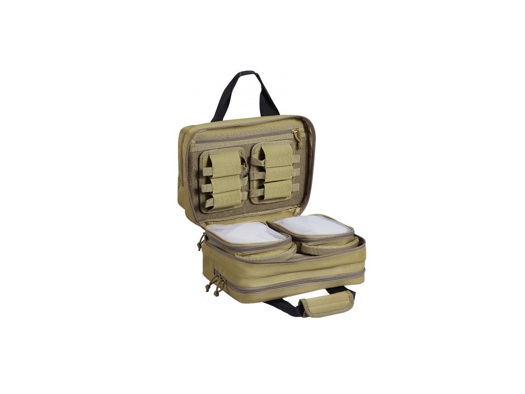Brašna na střelnici pro 2 pistole, taktická brašna na zbraň se 2 vestavěnými odnímatelnými pouzdry na pistole a 6 odnímatelnými zásobníky, brašna na zbraň pro venkovní lov, uzamykatelné pouzdro na zbraň, hnědáMultifunkční brašna na střelnici