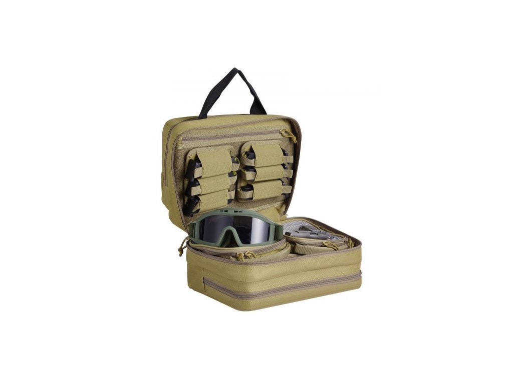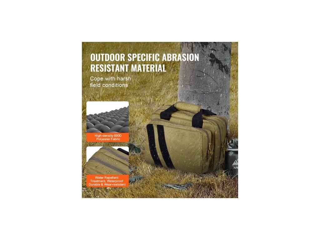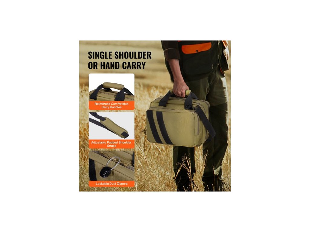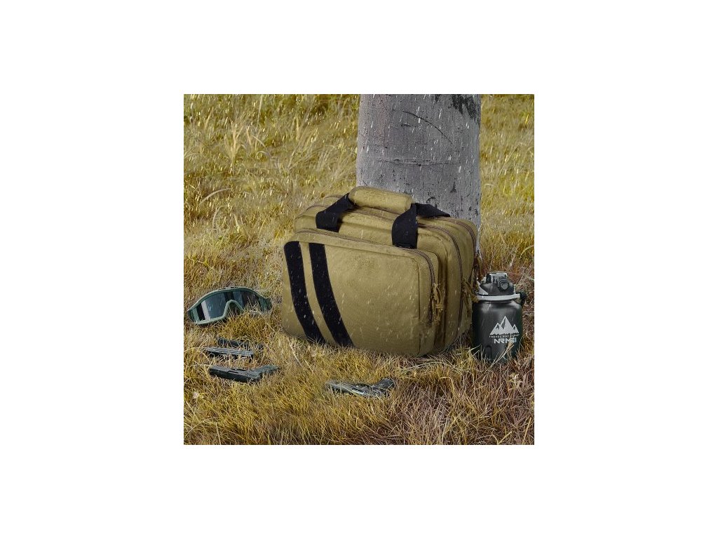 Brašna na střelnici pro 2 pistole, taktická brašna na zbraň se 2 vestavěnými odnímatelnými brašnami na pistole a 6 odnímatelnými zásobníky, brašna na střelnici pro venkovní loveckou střelbu, uzamykatelné pouzdro na zbraň, hnědá