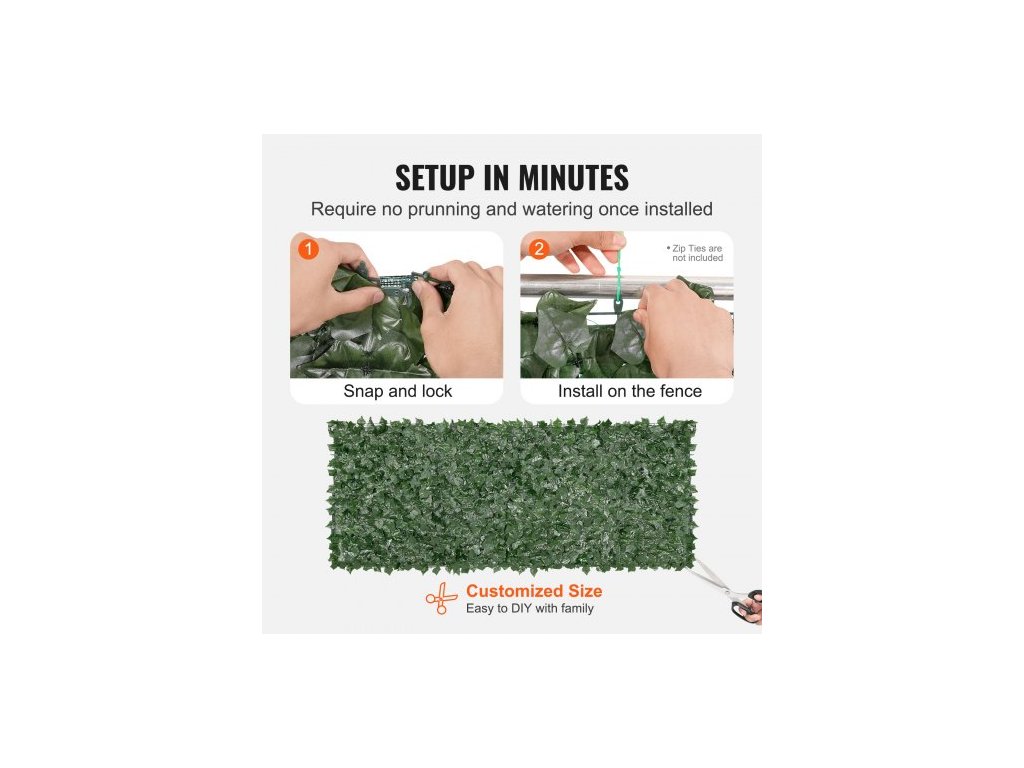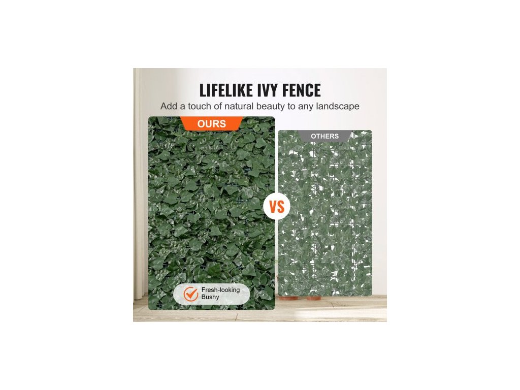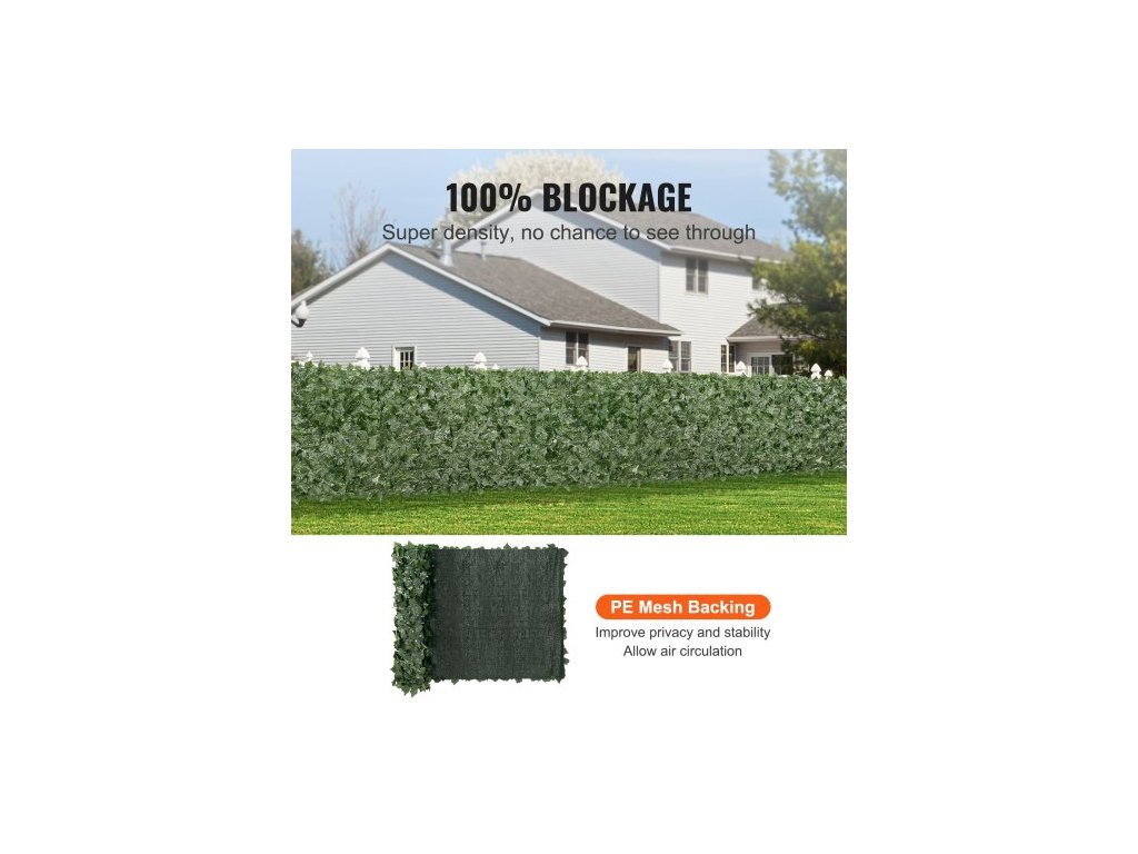 Břečťanový plot na ochranu soukromí, umělá zelená stěna 990 x 2490 mm, zeleň z břečťanu s podkladovou síťovinou a zesíleným spojem, umělý živý plot, dekorace z listů vinné révy pro venkovní zahradu, dvůrPodkladová síťovina z PE