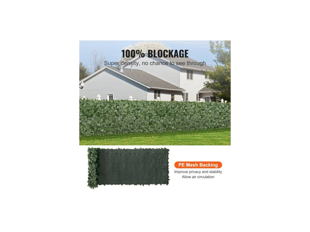 Břečťanový plot pro soukromí, 1 x 4m umělá zelená stěna, zeleň z břečťanu s podkladovou síťovinou a zesíleným spojem, umělé živé ploty z vinných listů pro venkovní zahradu, dvůr, balkon