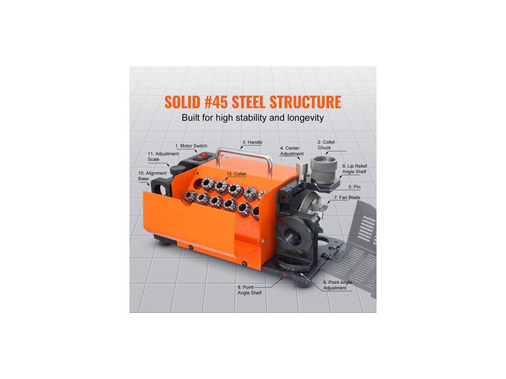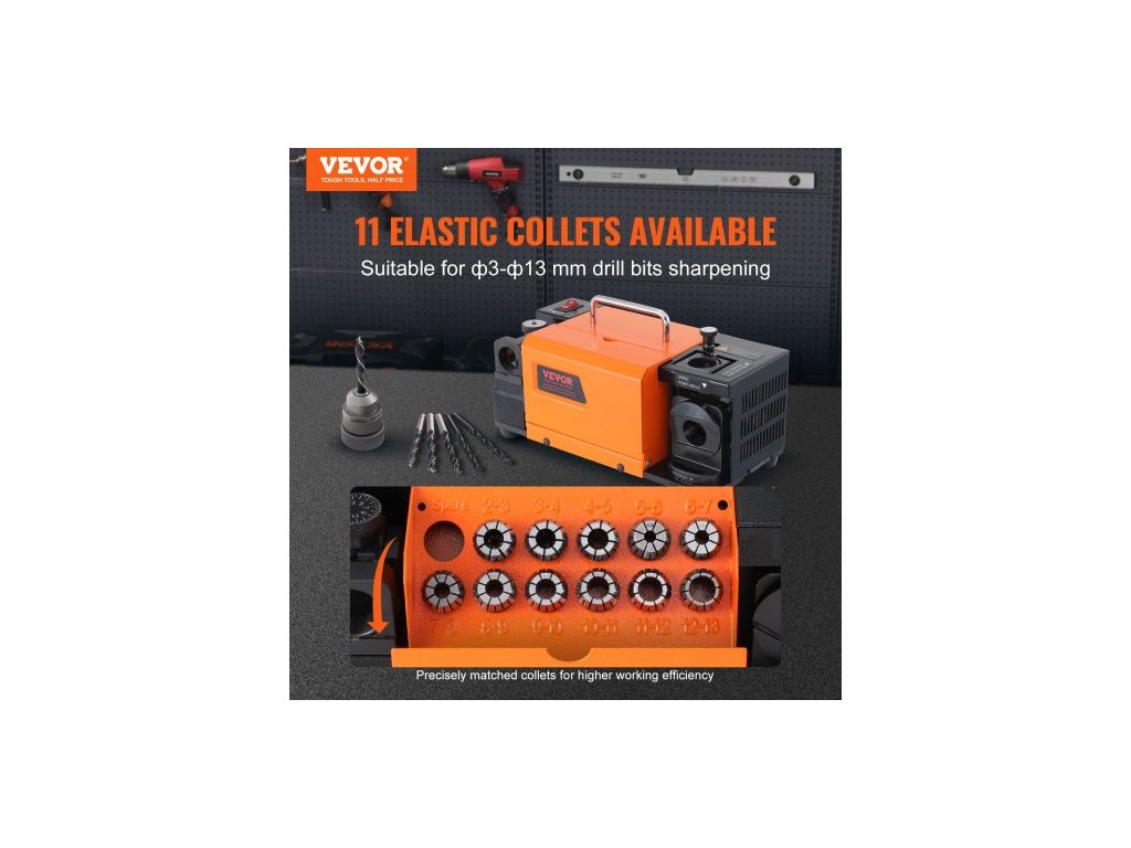 Brousek na vrtáky , bruska na vrtáky MR-13A 3-13 mm, nastavitelný úhel špičky 95° až 135°, přenosný ostřič s 11 kleštinami, kotoučem CBN a SDCNastavitelný úhel špičky
