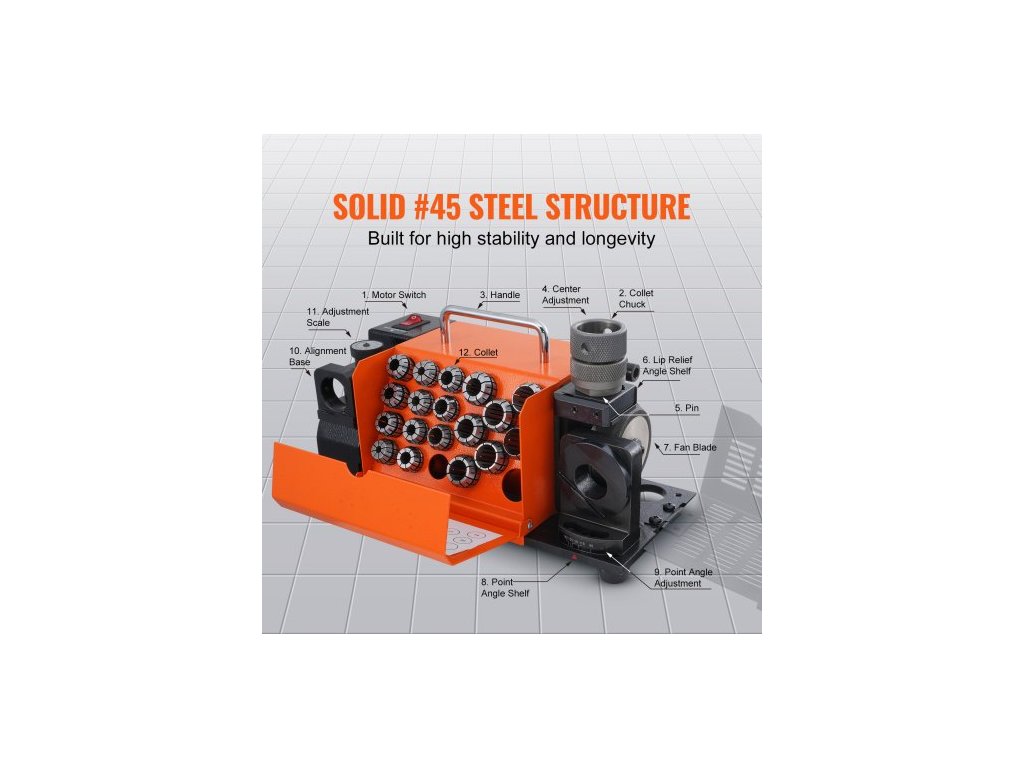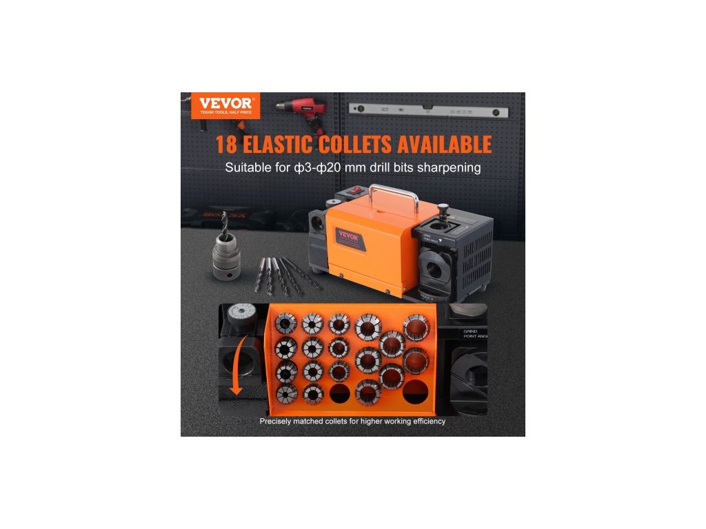 Brousek na vrtáky MR-20G Brousek na vrtáky 3–20 mm s 18 kleštinamiNastavitelný úhel