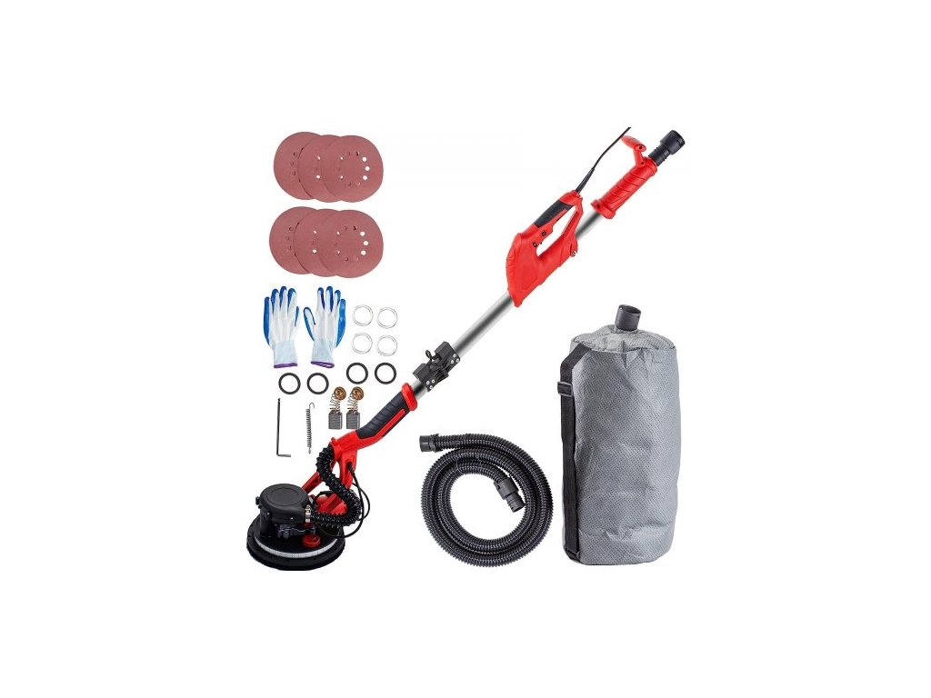 bruska na sádrokarton 750W, elektrická bruska na sádrokarton, skládací bruska na sádrokarton, s teleskopickou rukojetí, elektrická bruska, variabilní rychlost 800-1750 ot./min, bruska na stěny, s LED páskem a vakuovým sáčkem