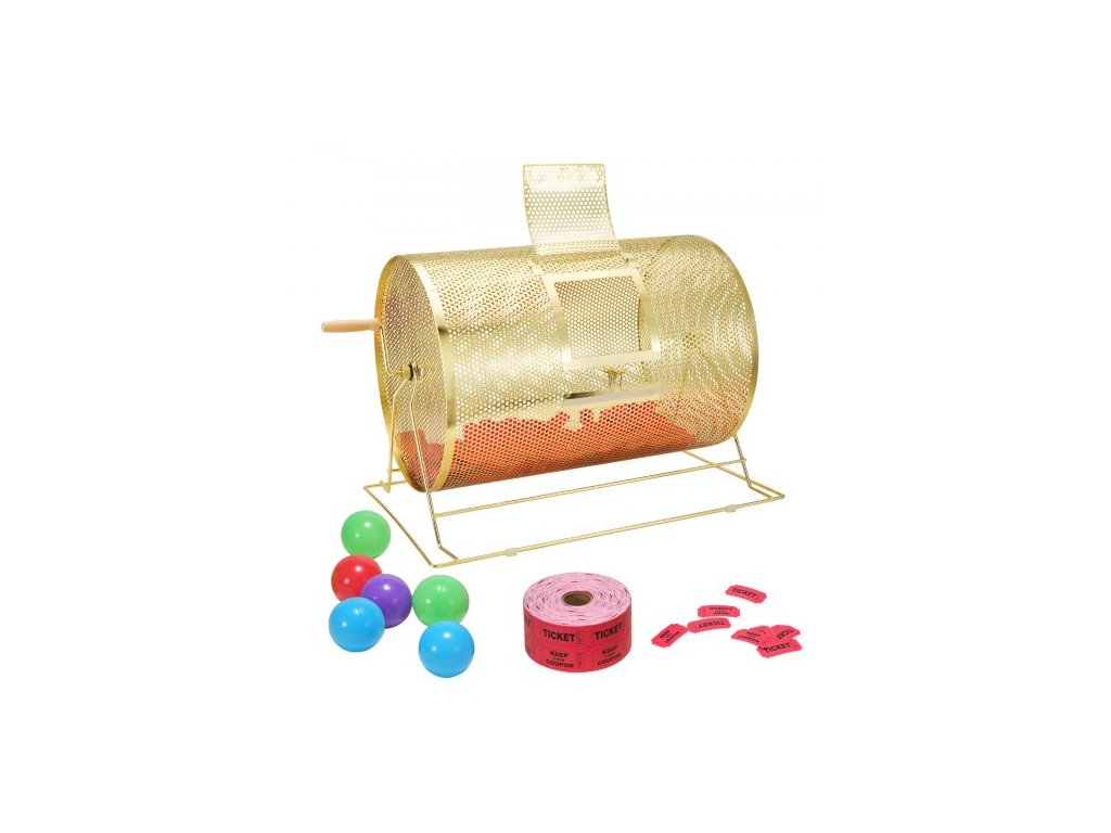 tombolový buben, mosazná otočná klec na tombolové losy 14,8 x Ø21,26 palce, pojme 10 000 losů nebo 300 pingpongových míčků, kovová loterijní otočná klec s dřevěnou otočnou rukojetí, pro bingo losyVolba pro velké akce