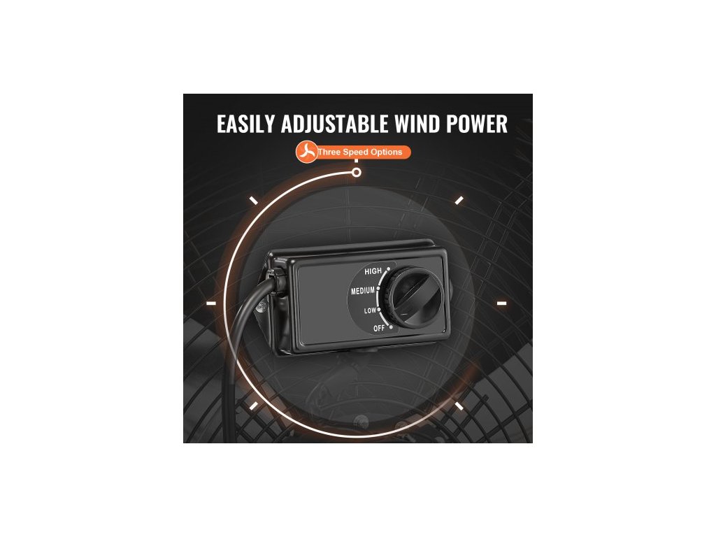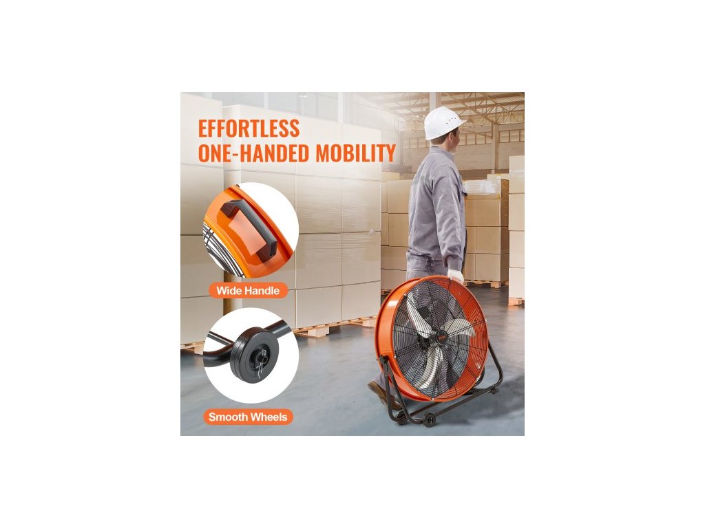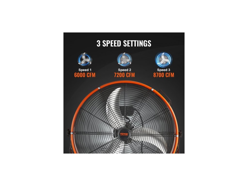 Bubnový ventilátor , 24palcový vysokorychlostní průmyslový ventilátor do dílny, pro náročné komerční použití, 3 rychlosti, 8600 CFM, 360° nastavitelný naklápěcí průmyslový podlahový ventilátor pro sklad, dílnu, továrnu, sklepNastavitelné rychlosti