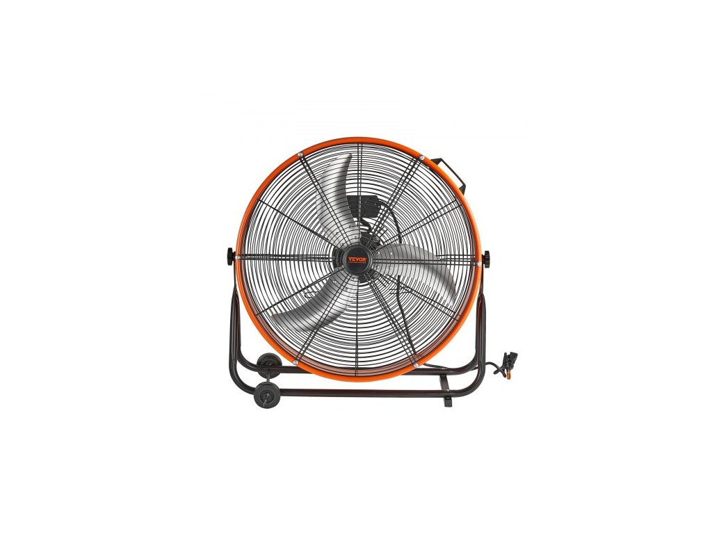 Bubnový ventilátor , 24palcový vysokorychlostní ventilátor do průmyslové dílny, pro náročné komerční použití, 3 rychlosti, 8600 CFM, 360° nastavitelný naklápěcí průmyslový podlahový ventilátor pro sklady, dílny, továrny a sklepy