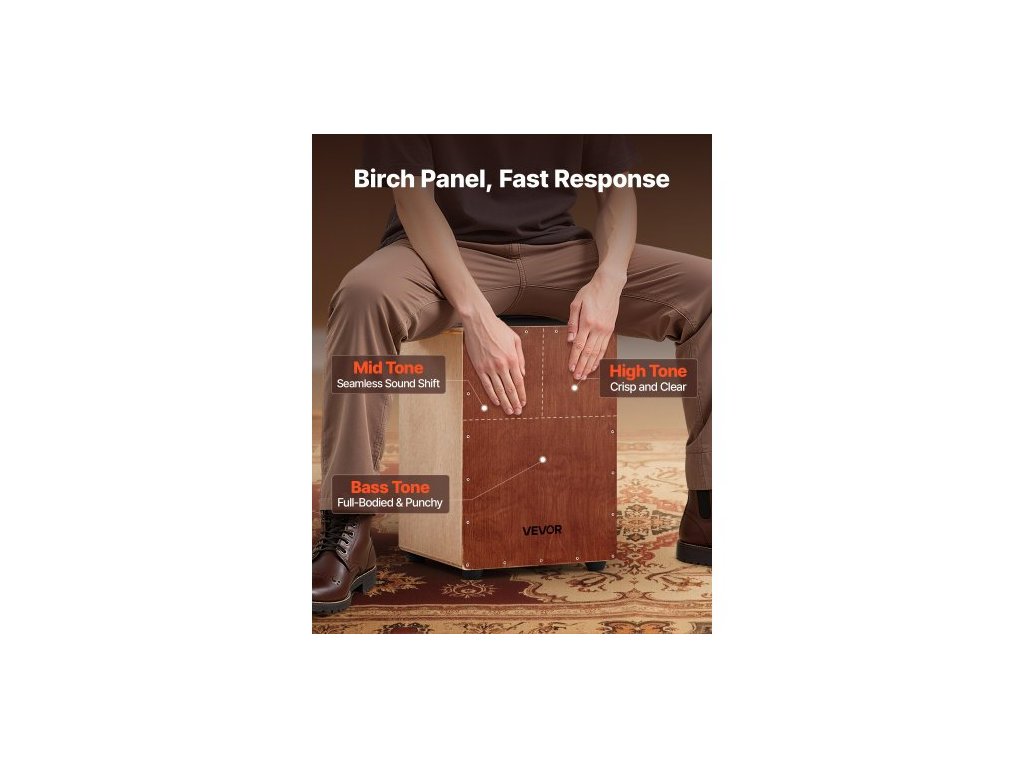 Cajon Box Drum, s vnitřními dráty pro malý buben, lehká dřevěná krabička na bicí, přenosný hudební nástroj z březového dřeva s cestovní taškou, pro začátečníky i profesionály, 305 x 305 x 430 mmKulatý zvukový otvor
