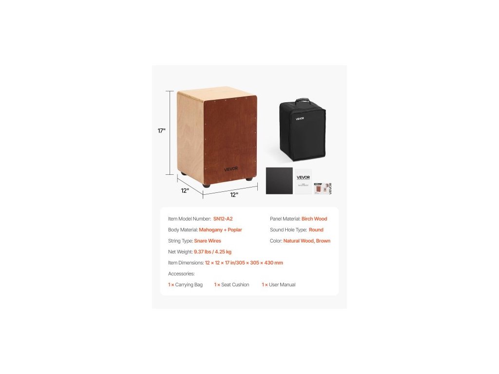 Materiál těla: Mahagon + topol,Typ strun: Dráty pro malý buben,Typ zvukového otvoru: Kulatý,Barva: Přírodní dřevo, Hnědá,Číslo modelu: SN12-A2,Materiál panelu: Březové dřevo,Rozměry výrobku: 12 x 12 x 17 palců/305 x 305 x 430 mm,Čistá hmotnost: 9,37 4,25 kg