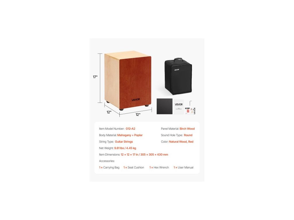 Materiál těla: Mahagon + topol,Typ strun: Kytarové struny,Typ zvukového otvoru: Kulatý,Barva: Přírodní dřevo, Červená,Číslo modelu: G12-A2,Materiál panelu: Březové dřevo,Rozměry výrobku: 12 x 12 x 17 palců/305 x 305 x 430 mm,Čistá hmotnost: 9,81 lbs/4,45 kg