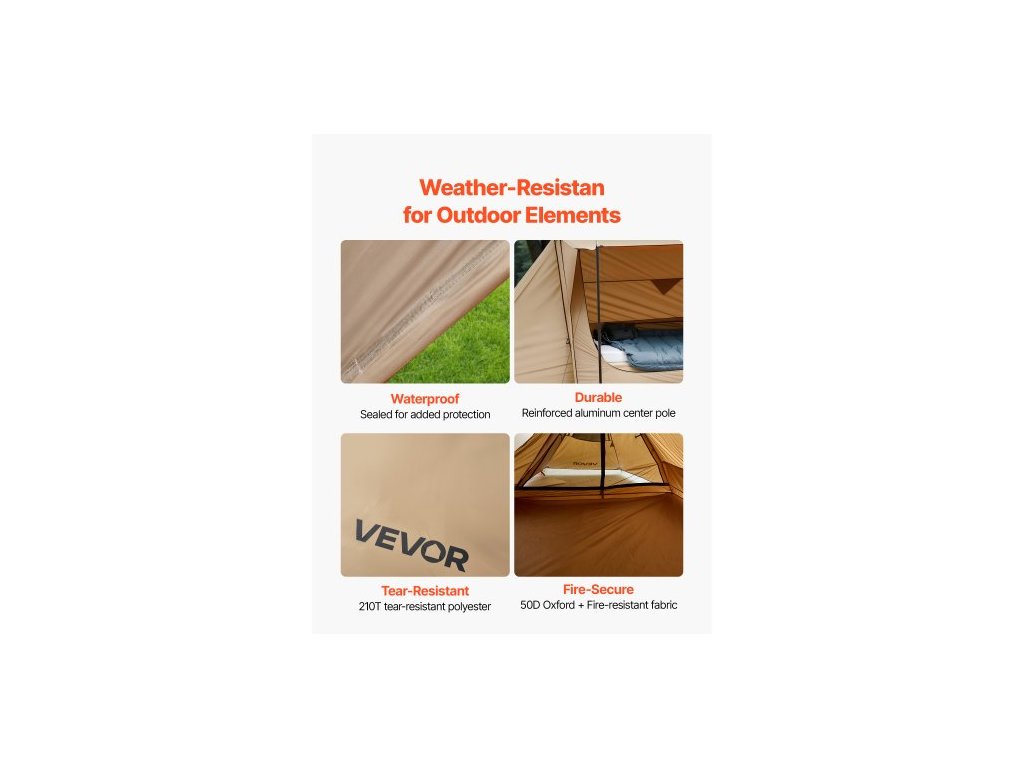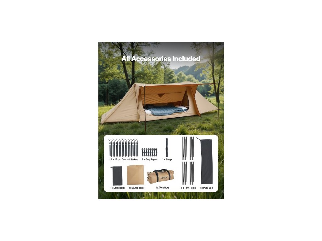 Camping Hot Tent, lehký stan pro bushcraft s vařičem a 2 plachtovými tyčemi, vodotěsný zimní stan, přístřešky, přenosný 4sezónní stan pro 2 osoby, turistika, rybaření, lov, turistika s batohem