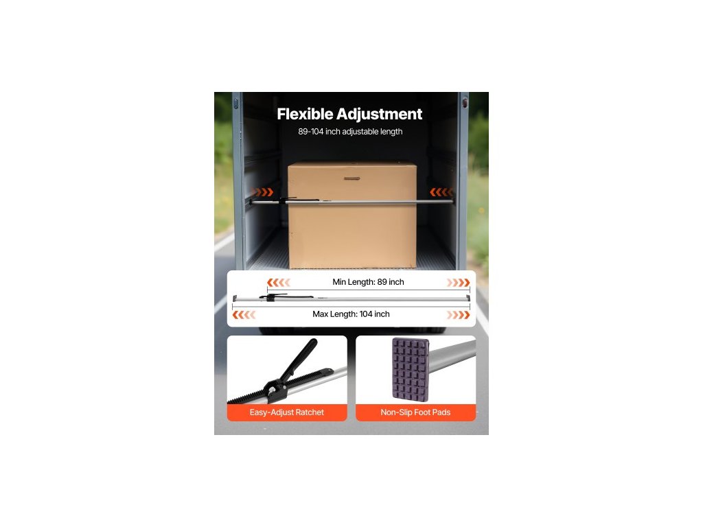 Cargo Bar, ráčna pro náklad, nastavitelná od 2261 mm do 2642 mm, odolný ocelový stabilizátor nákladu s protiskluzovou opěrkou, zajišťovací tyče korby pro nákladní automobily, návěsy, přívěsy (2 ks)Zabezpečení nákladu
