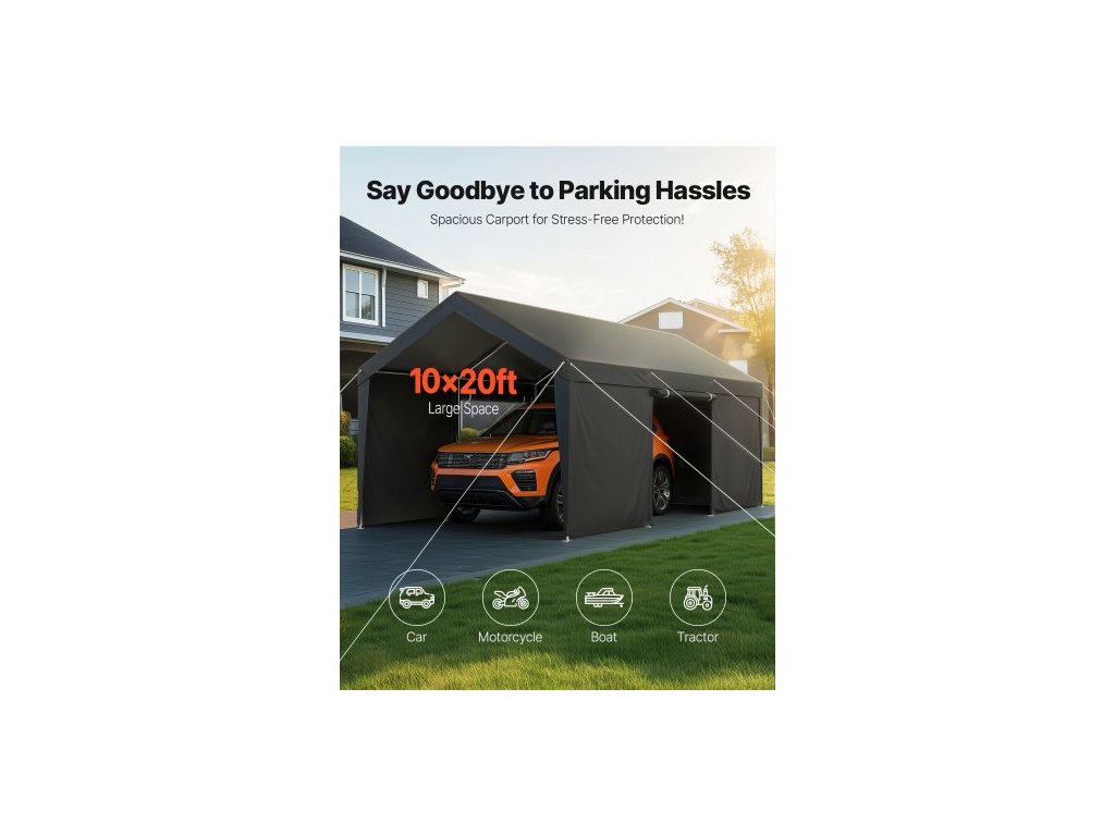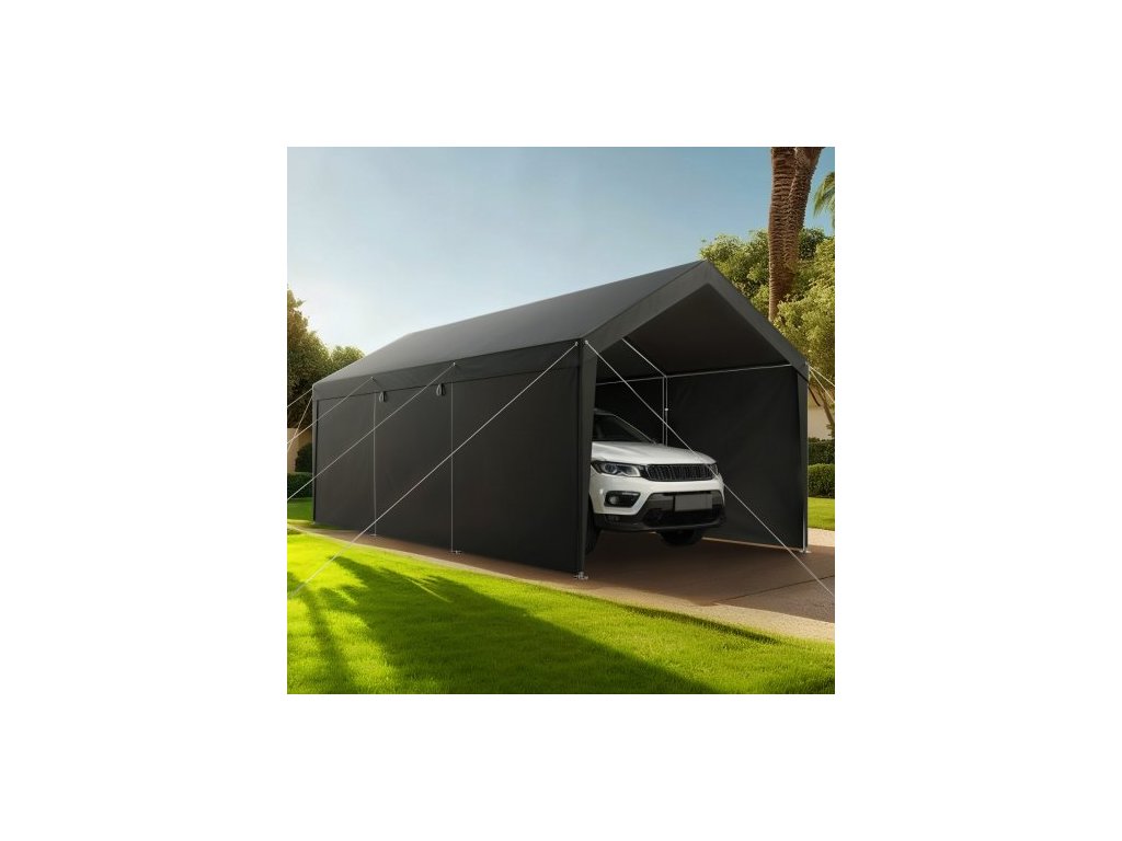 Carport, venkovní stříška na auto 10 x 20 stop, pitná voda s odnímatelnými bočními stěnami a dveřmi, odolný přístřešek na auto, odolný proti UV záření a vodě, celoroční ochrana pro automobil a loď, šedáOchrana proti povětrnostním vlivům