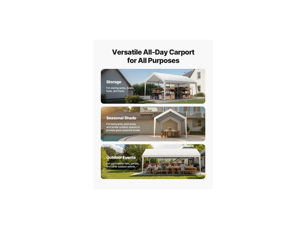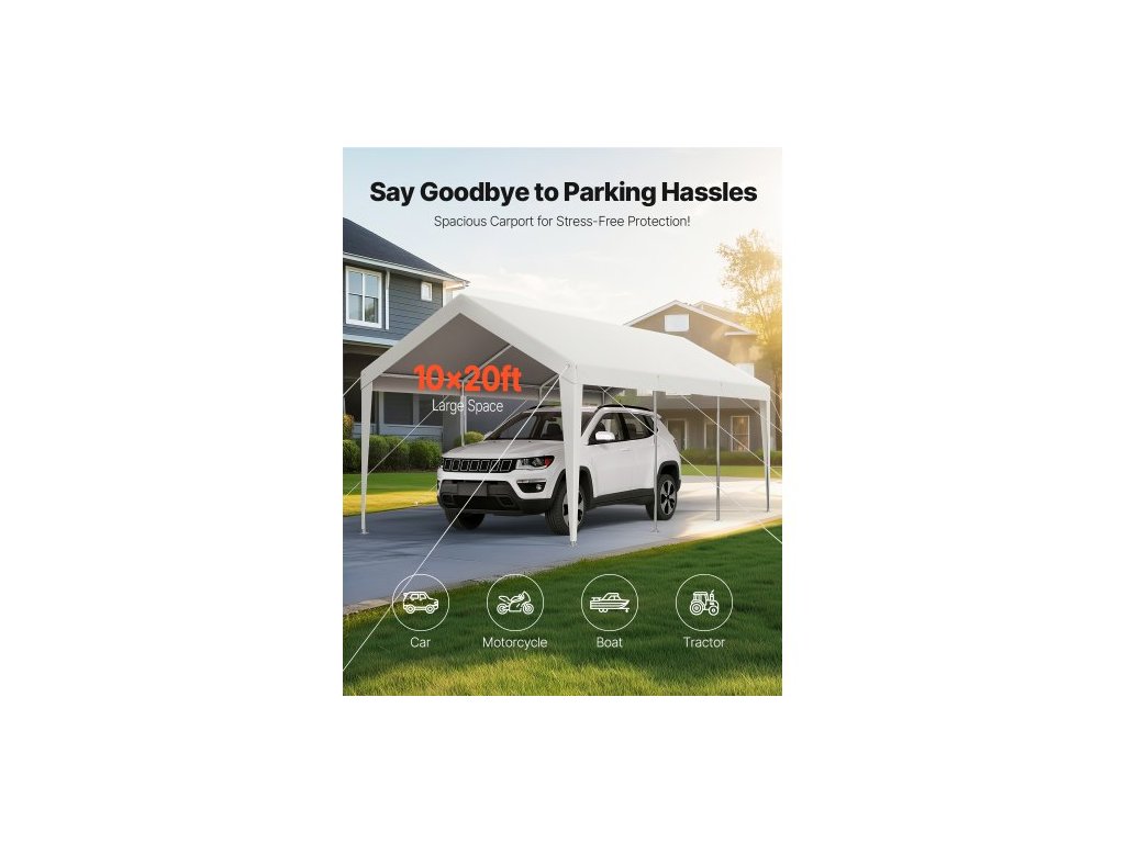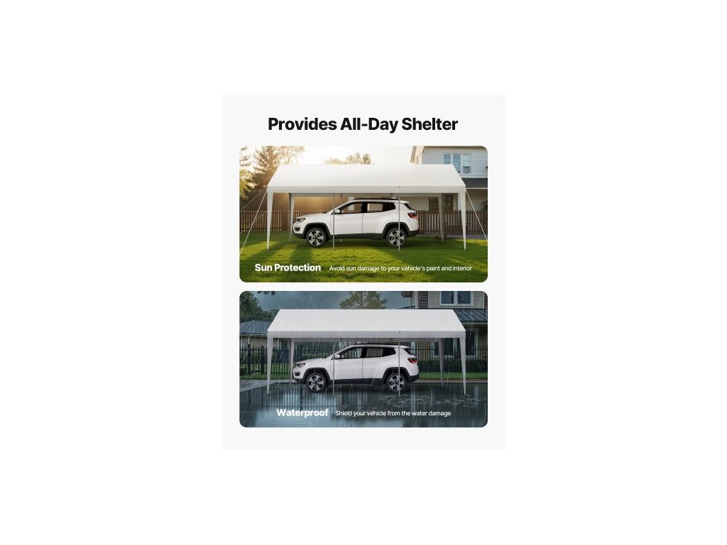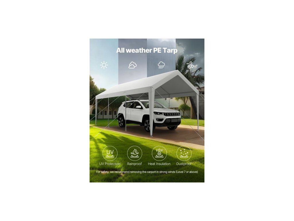 Carport, venkovní stříška na auto 10 x 20 stop, přístřešek na auto s pitnou vodou, odolný pozinkovaný přístřešek na auto, odolný proti UV záření a vodě, celoroční ochrana, úložný přístřešek na loď a motocykl, bílýOchrana proti povětrnostním vlivům