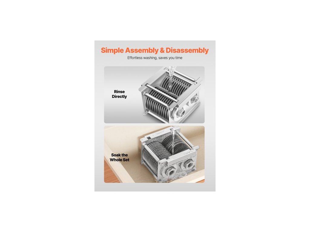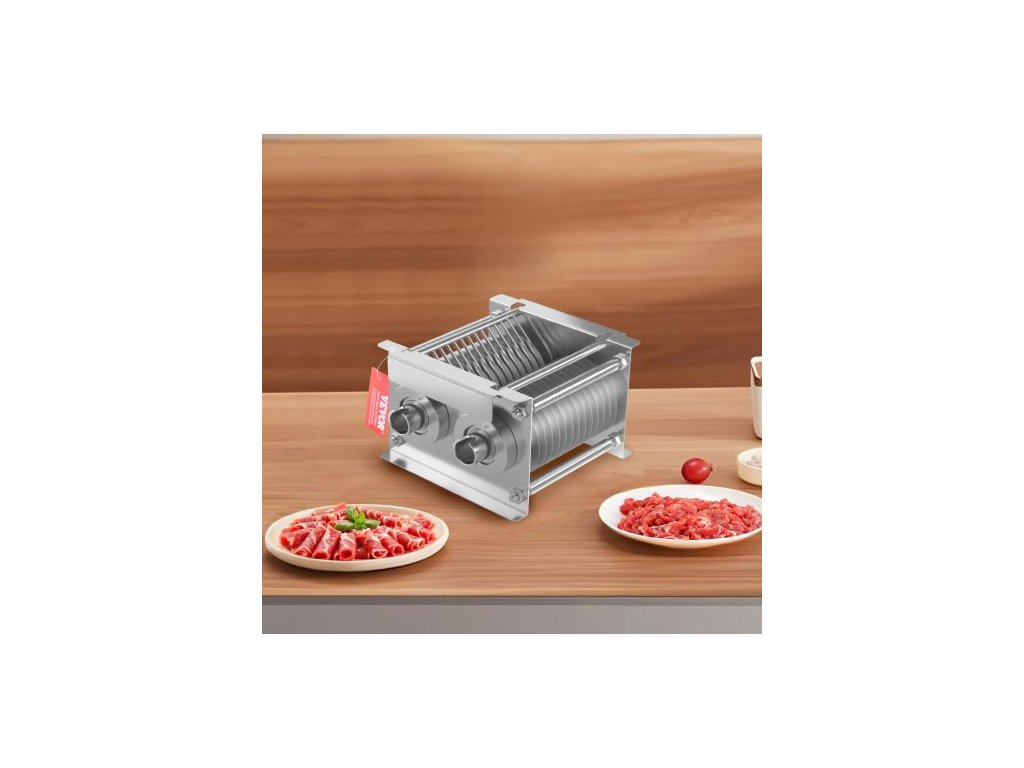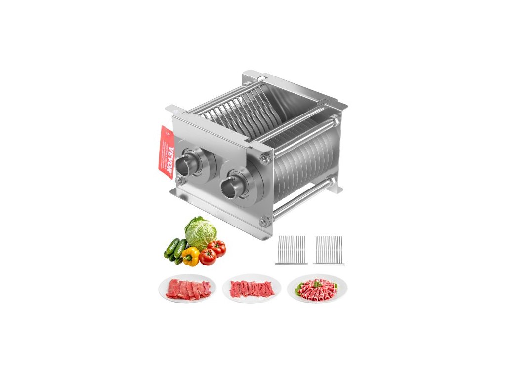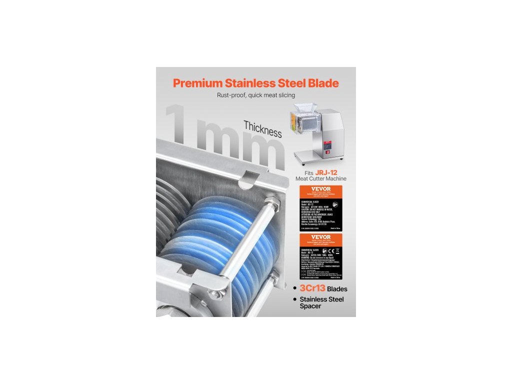 Materiál objímky a matice: nerezová ocel 201, materiál čepele: 3Cr13, materiál pouzdra: nerezová ocel 201, číslo modelu: SJY-DQ90-DZ-7, tloušťka řezu: 7 mm, počet čepelí: 26, hmotnost položky: 10,14 lbs / 4,6 kg, rozměry položky: 6,38 x 6,77 x 4,94 palce / 162 x 172 x 125,5 mm, Velikost čepele: ∅ 3,39 palce / ∅ 86 mm