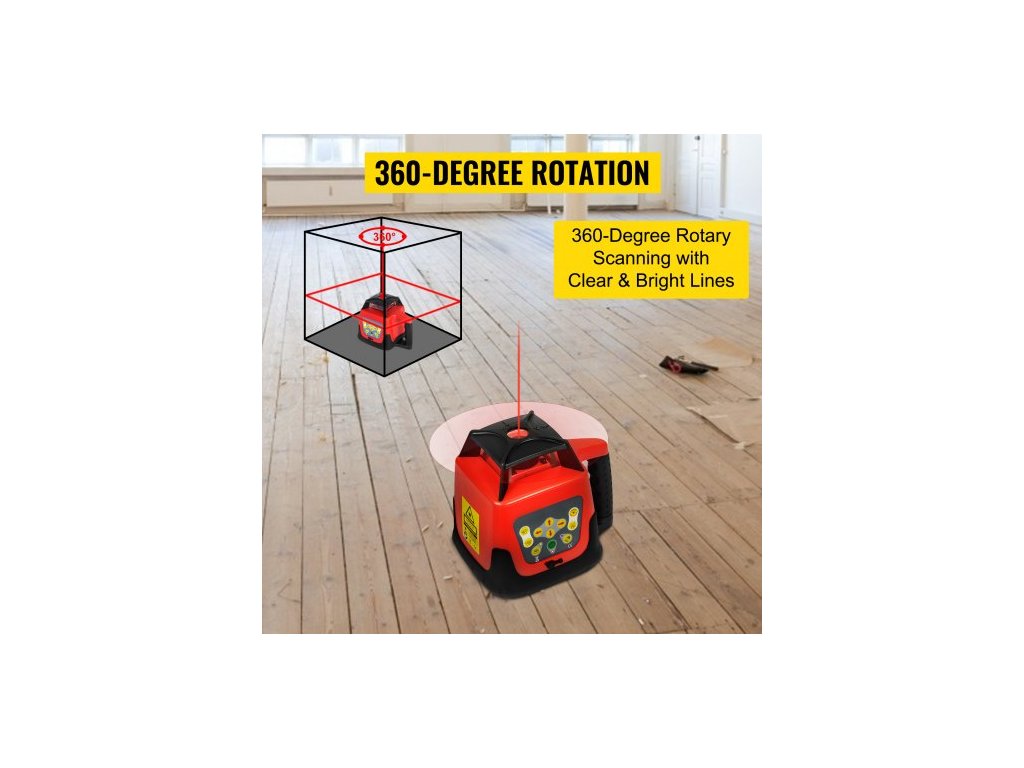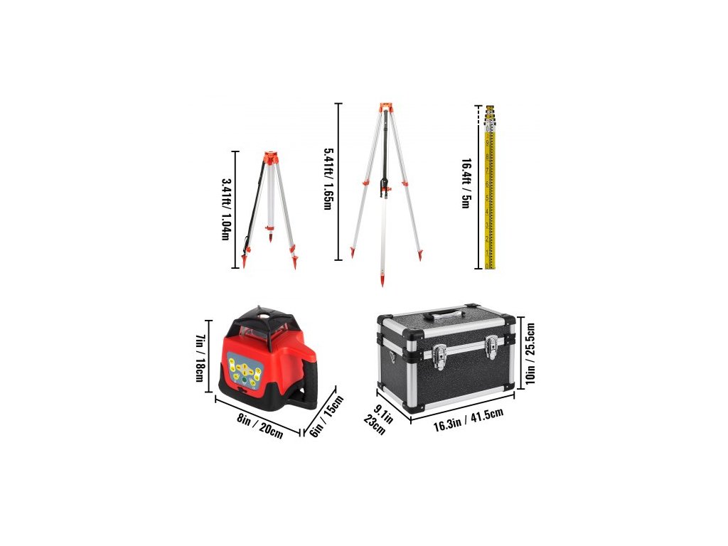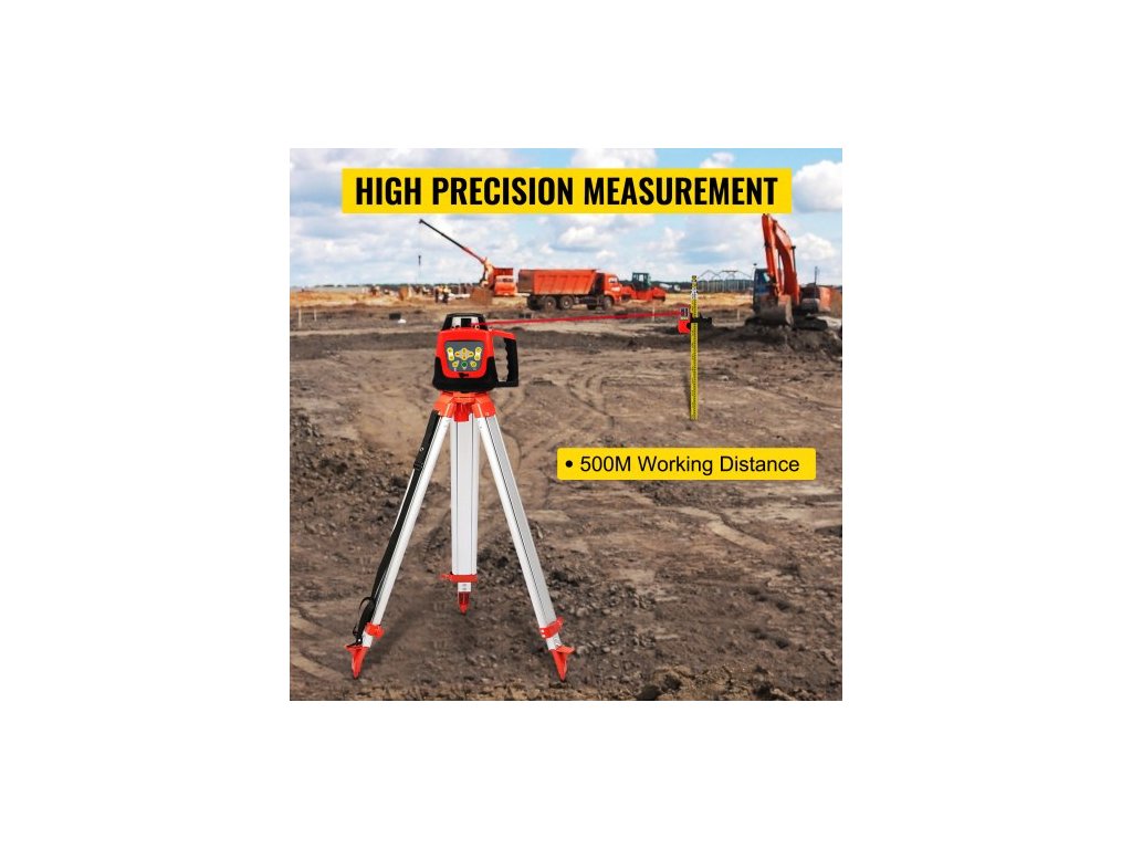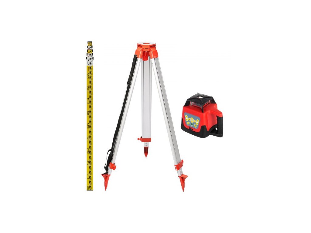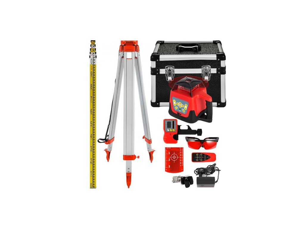 Červený rotační laserový nivelační přístroj, samonivelační, měřicí, automatický samonivelační laserový nivelační přístroj, 360stupňový rotační skenovací přístroj, 500 m + stativ + 5m lať