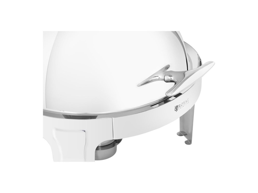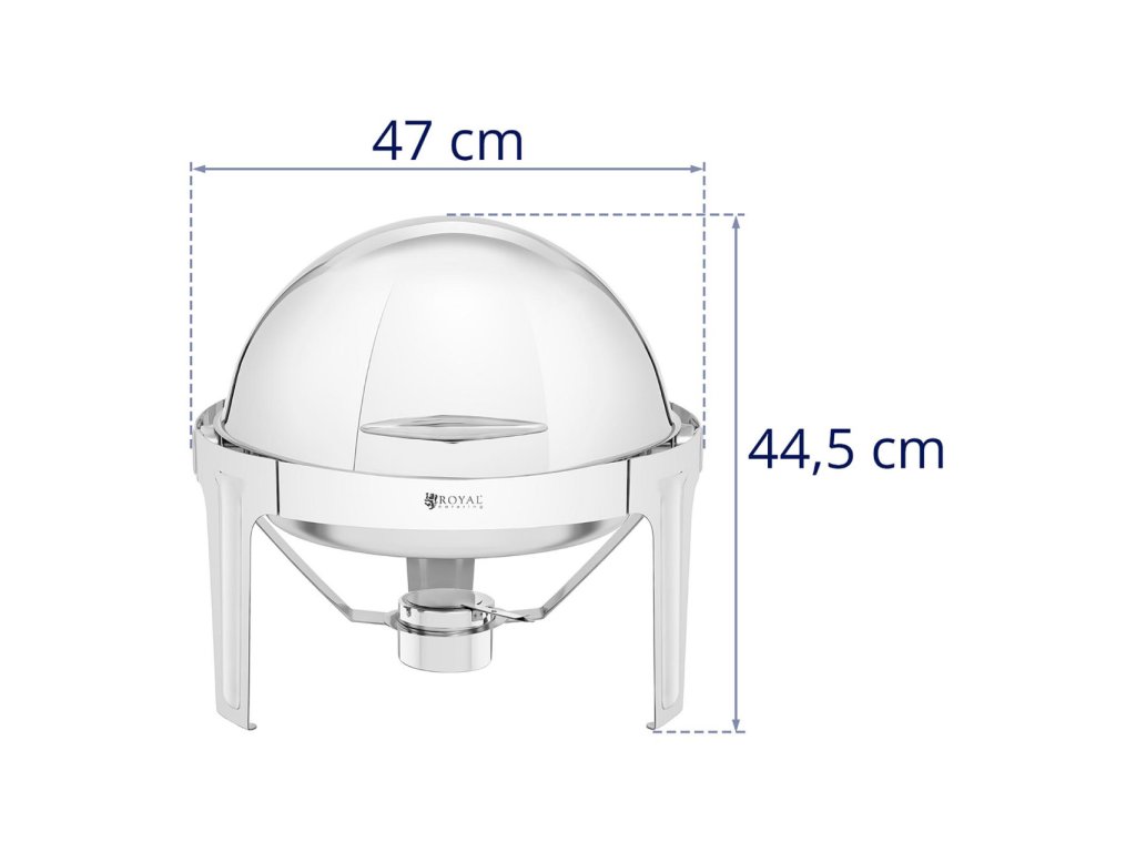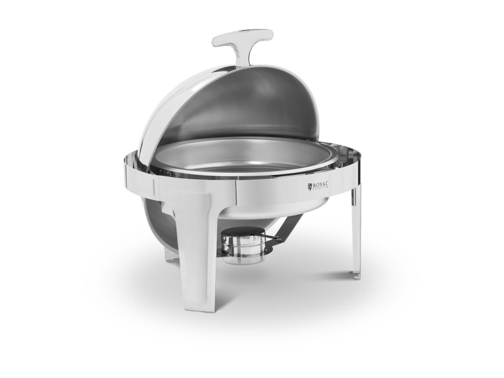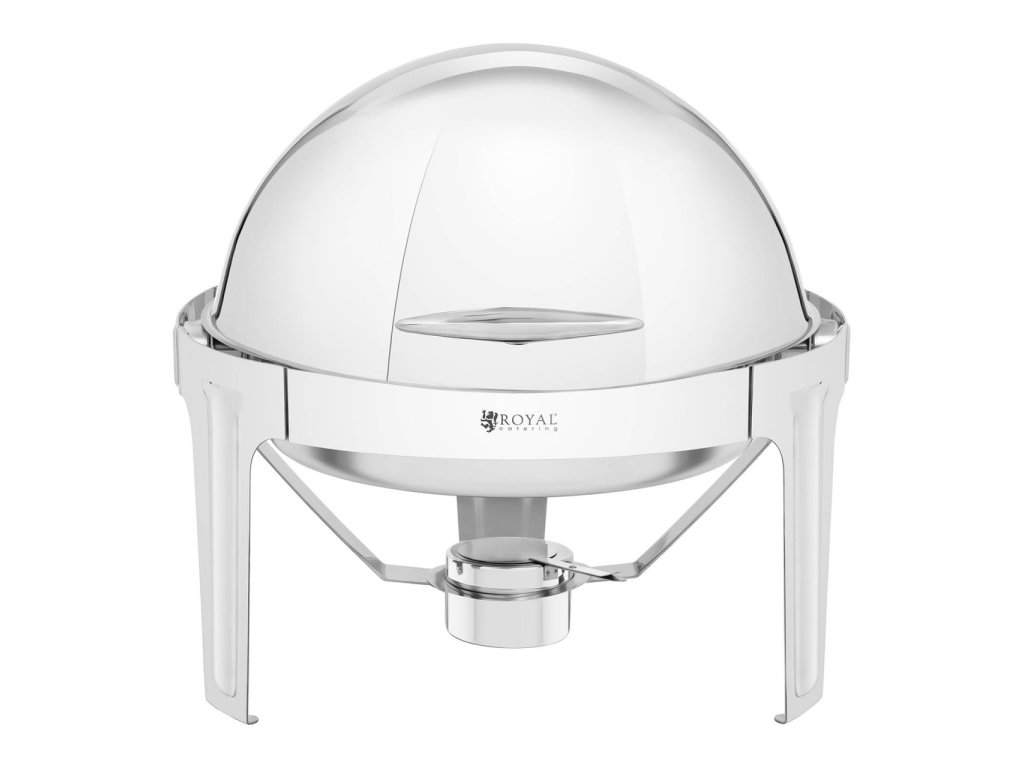 Elegantní chafing dish v nápadném designu z ušlechtilé oceli Chafing dish značky Royal Catering je ideálním přístrojem pro vynikající bufety nebo exkluzivní catering. Ať již v hotelu, v restauraci, ve stáncích s občerstvením, na banketu nebo soukromé akci – tato elegantní hřející nádoba z ušlechtilé oceli je nepostradatelná ve všech případech, kdy je třeba prezentovat pokrmy nápadným způsobem a zároveň je udržovat teplé. Kulovitý tvar a neobvyklý design tohoto chafing dishe upoutá pozornost každého hosta. Gastronomické vybavení pro elegantní prezentaci a udržování jídel v teple Tento tzv. rechaud se snadno používá a navíc jste při jeho použití flexibilní, protože jej není třeba zapojovat do sítě Nádoba na palivo je snadno přístupná a lze ji naplnit hořlavou pastou (není součástí balení). Hořák má víko pro snadné hašení plamene a je navržen tak, aby používání chafing dishe bylo bezpečné. Při provozu se spodní nádoba naplní teplou nebo horkou vodou. Teplo putuje do dodávané nádoby na potraviny o objemu 6 l. Vodní lázeň umožňuje jemné zahřívání jídel bez rizika připálení a udržuje jídlo teplé i nějakou dobu poté, co hořák zhasl. Víko z ušlechtilé oceli chrání jídlo, směruje zkondenzovanou vodu zpět do vodní lázně a udržuje teplotu uvnitř chafing dishe. Lze jej sklopit dozadu tak, aby byly pokrmy krásně prezentované a hosté k nim měli snadný přístup. Víko navíc disponuje držadlem, které se nezahřívá. Nádobu na pokrmy lze snadno vyjmout, abyste mohli doplnit vodní lázeň nebo za účelem čištění. Díky použití kvalitní ušlechtilé oceli má tento ohřívač potravin ušlechtilý vzhled a je hygienický, robustní, trvanlivý a odolný.Doplňkové parametry