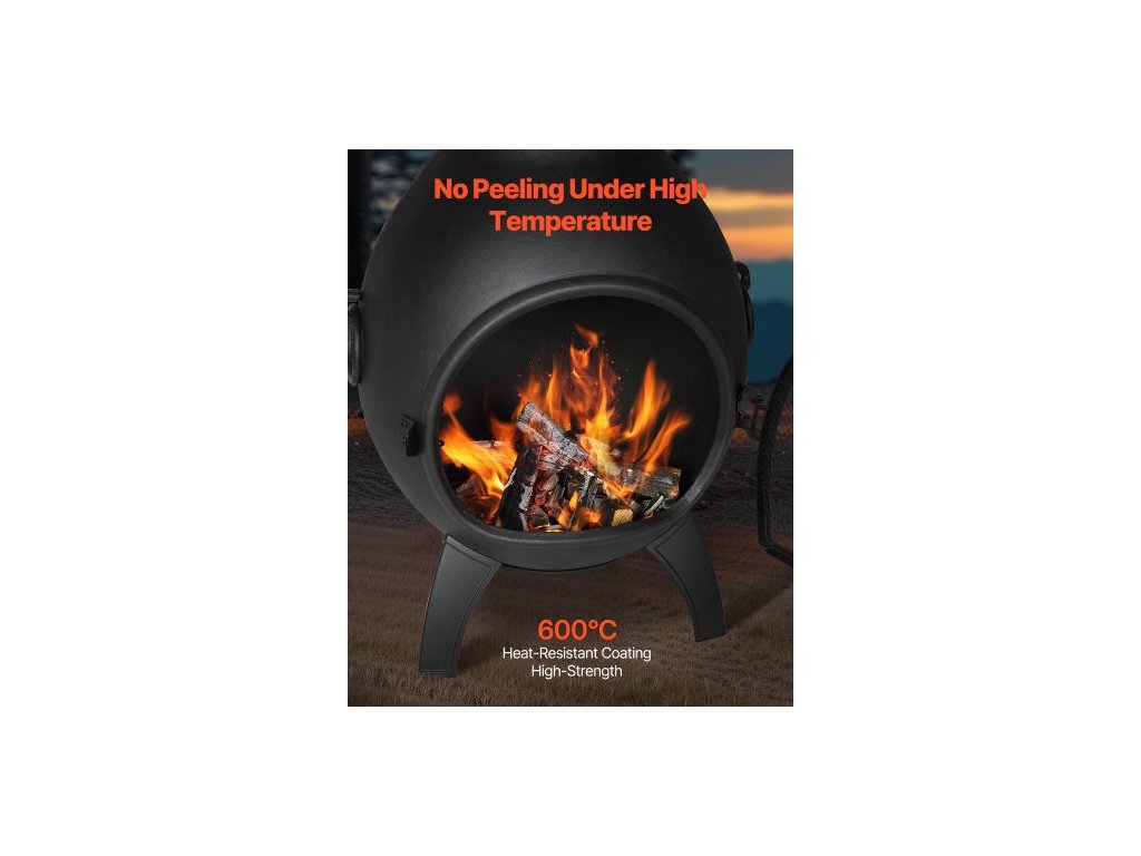 Chiminea, venkovní ohniště na dřevo o průměru 18 palců, kulovitý krb pro grilování a ohřev, venkovní dřevěné ohniště s mřížkou, komínovým pláštěm a nerezovým víkem Chiminea, na terasu, zahradu, dvůr
